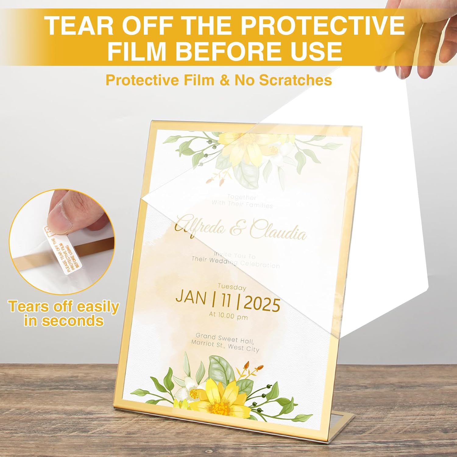 - Easy to Use: Each of our Acrylic Sign Holder comes with a peel off film guide, follow the red arrows to peel off the film in seconds, and the plastic sign holder has an opening on its side for easy paper insertion