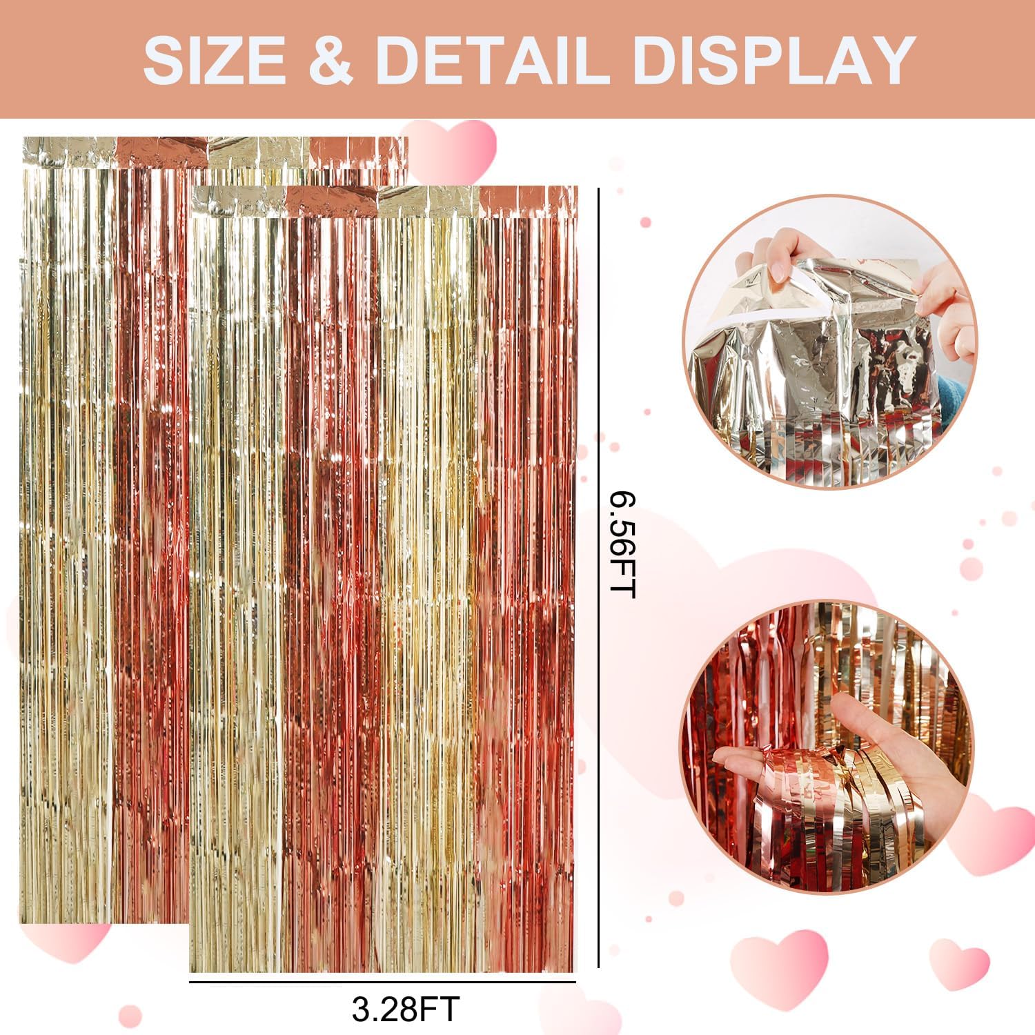 TONIFUL Valentine's Day Door Streamers,Rose Gold and Light Gold Photo Booth Backdrop Metallic Streamers Foil Fringe Curtain for Birthday Bridal Shower Engagement Party Decoration