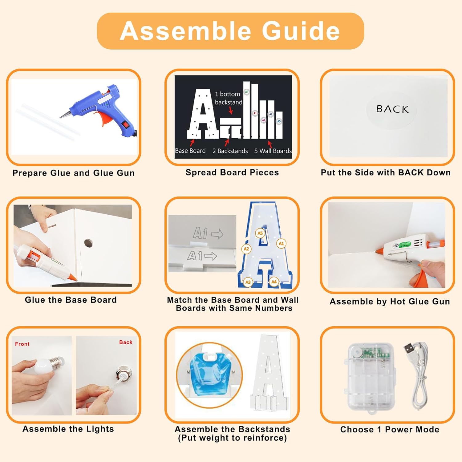 - Easy to Assemble: Pre-cut foam frame board numbers are easy to set up: 1) Glue the base board and match the base board and wall boards according to same number. 2) Glue the base board and wall boards together. 3) Screw the bulbs into the board, connect LED lights and power on. (Noted: Glue gun, glue and batteries are not included)