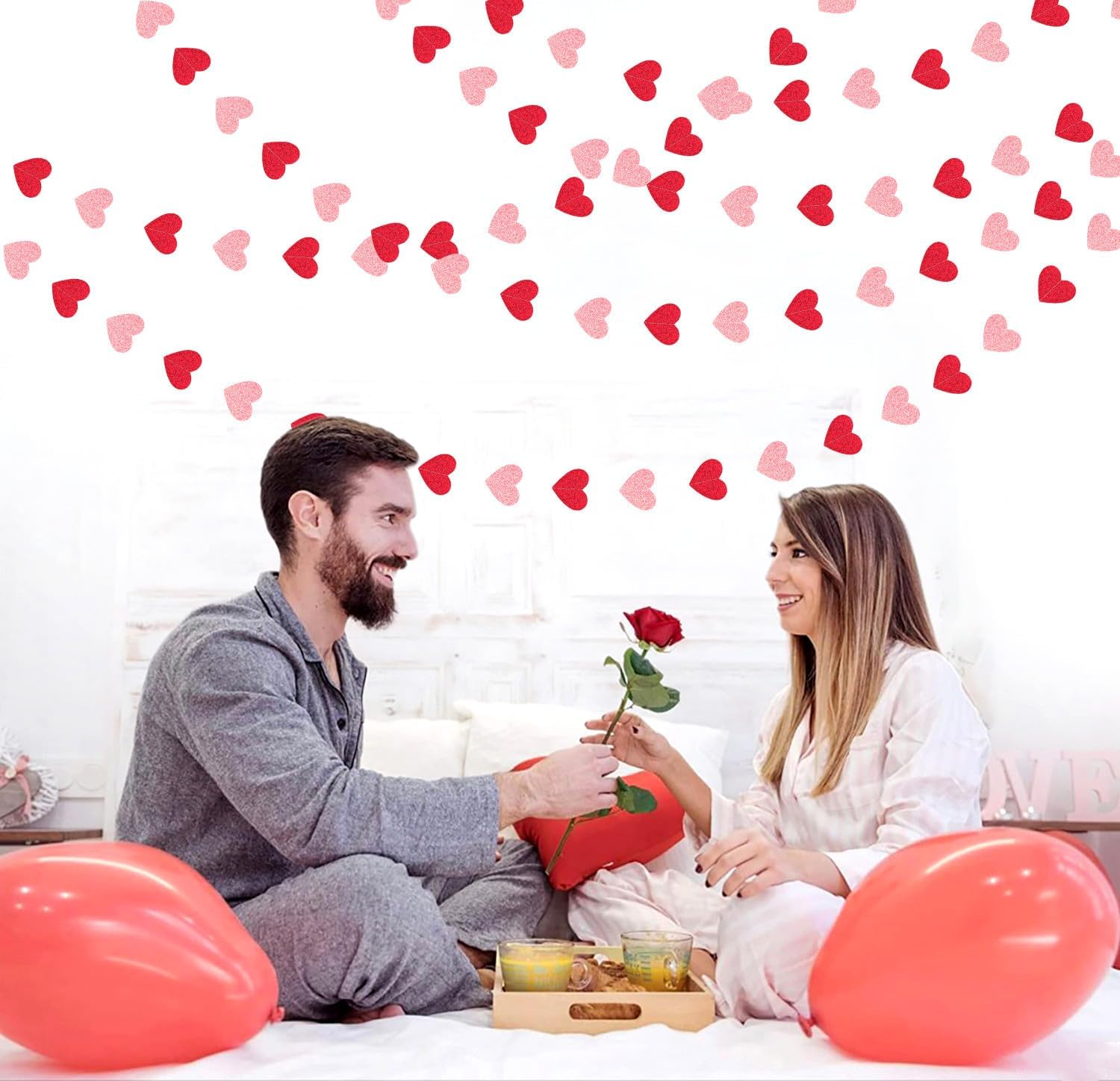 - 【Red Pink Valentines Decorations Kit Includes】The party garlands includes 4pcs paper heart garlands, each backdrop bunting is 13 feet/ 4 meters long, total length is 52 feet/16 meters.Every love shape Streamer Banner has 40pcs dots which the size is 2”.