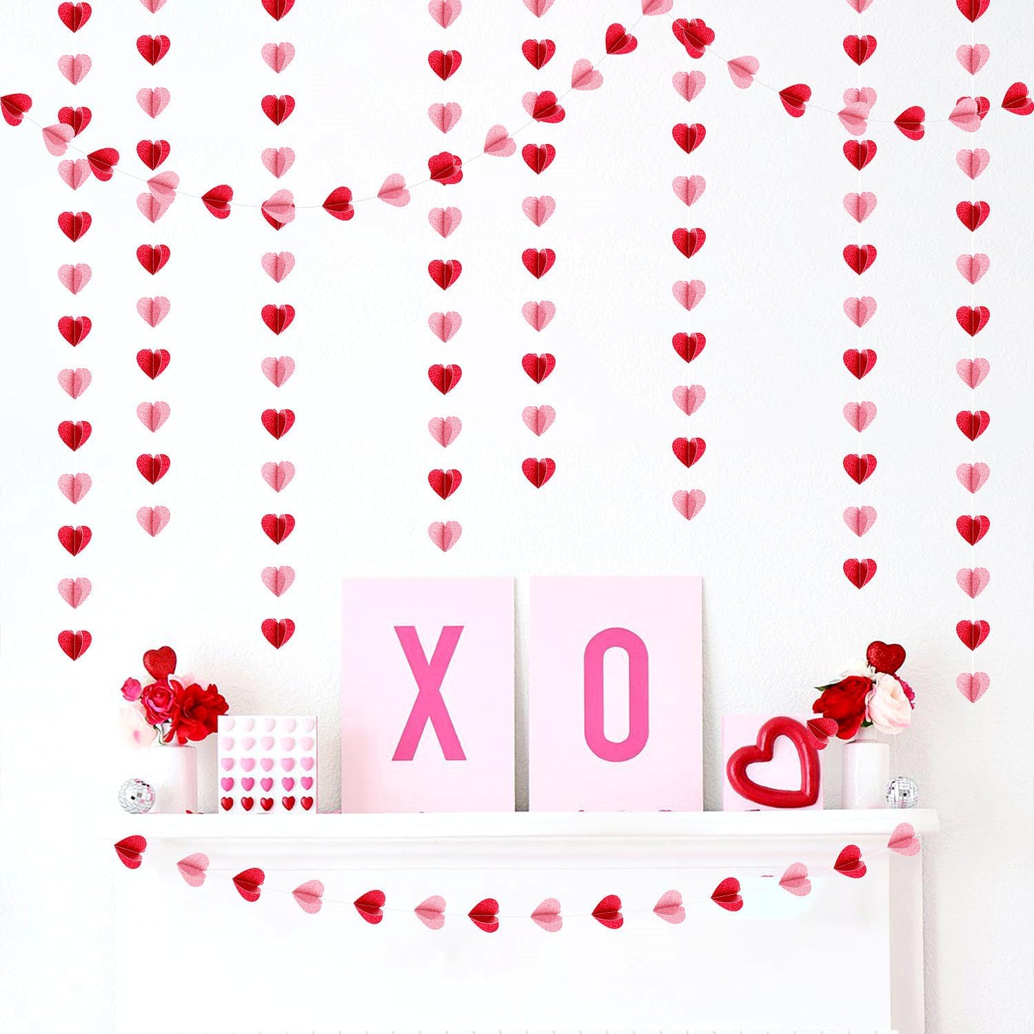 - 【Red Pink Valentines Decorations Kit Includes】The 3D party garlands includes 4pcs paper garlands, each backdrop bunting is 10 feet/ 3 meters long, total length is 40 feet/12 meters. Every love shape Streamer Banner has 30pcs dots which the size is 2”.