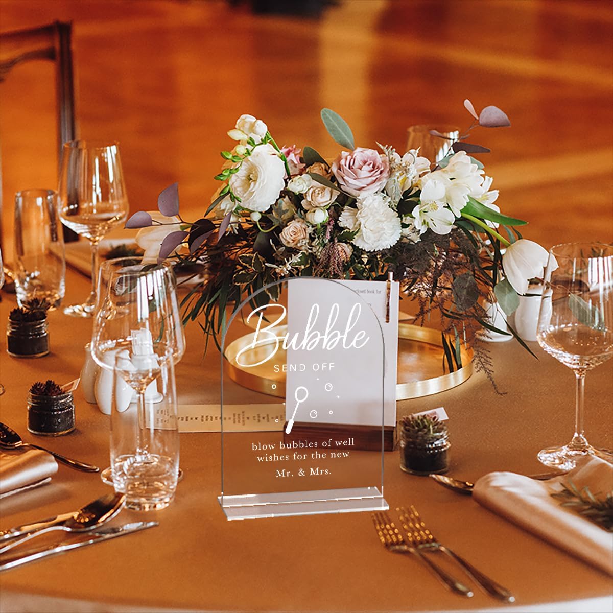 Acrylic Wedding Sign Wedding Signs for Ceremony Bubble Send Off Sign for Wedding Modern Calligraphy Arch Acrylic Table Top Sign for Wedding Reception and Event Party Table