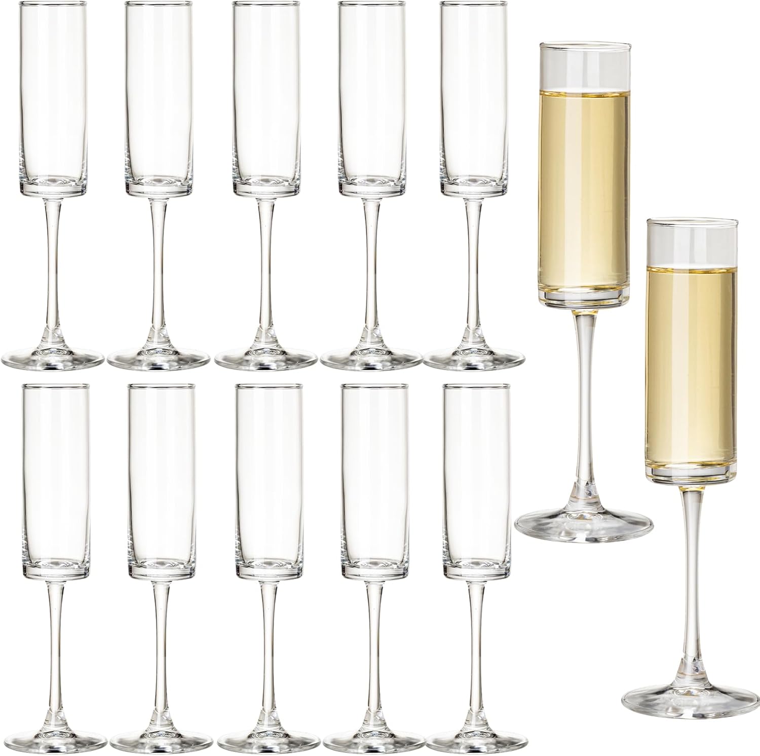 12 Pieces Clear Champagne Flutes 6 OZ Straight Sided Wine Glasses Champagne Long Stem Drinking Colored Glasses,Set of 12 Hand Blown Champagne Flutes Goblets for Wedding Cocktail Cups,Cava, Prosecco