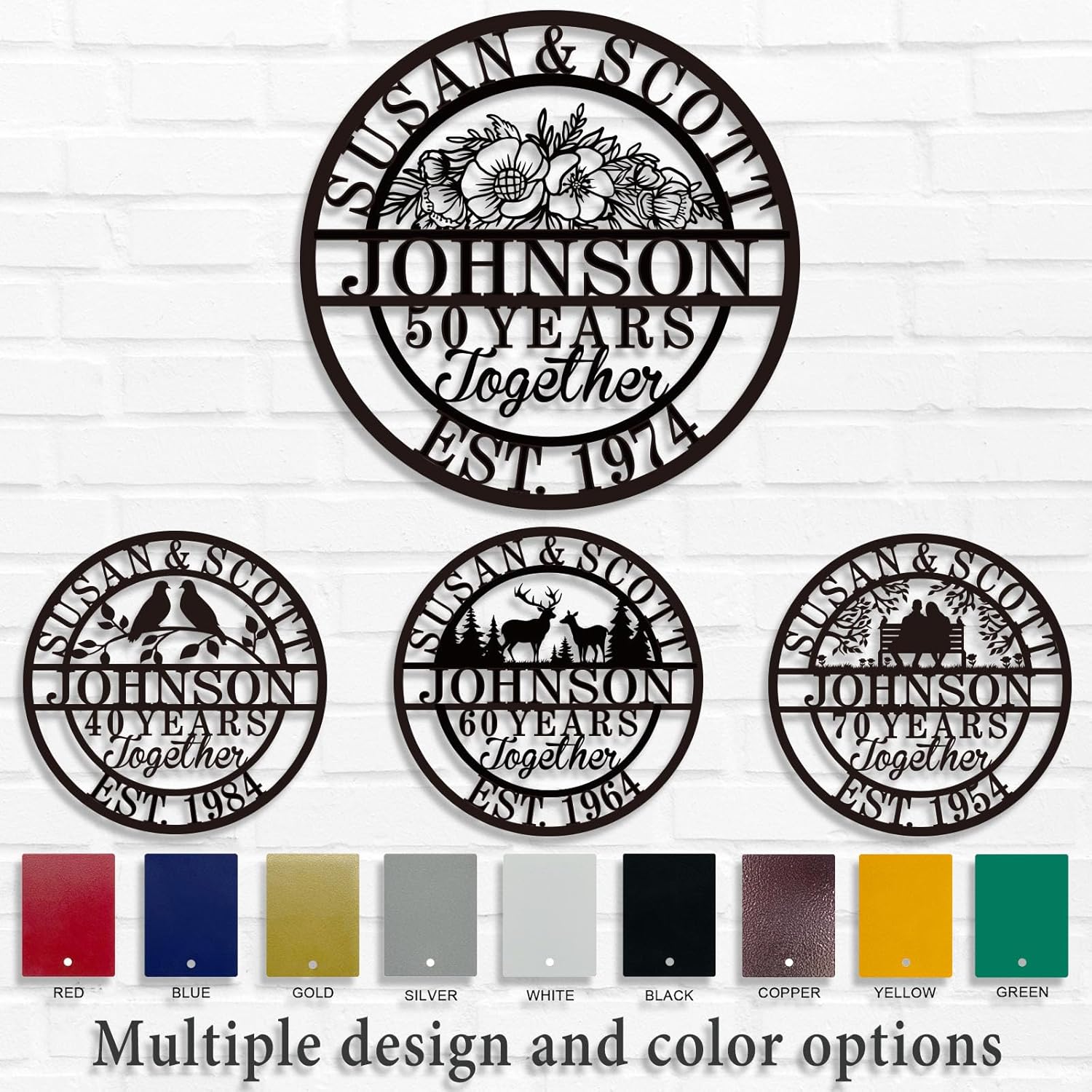 Custom 50th/40th/60th/70th/30th/1-99 Years Wedding Anniversary Sign Gifts for Couples Parents, Custom Metal Monogram Sign Personalized Family Name Signs (Flowers)