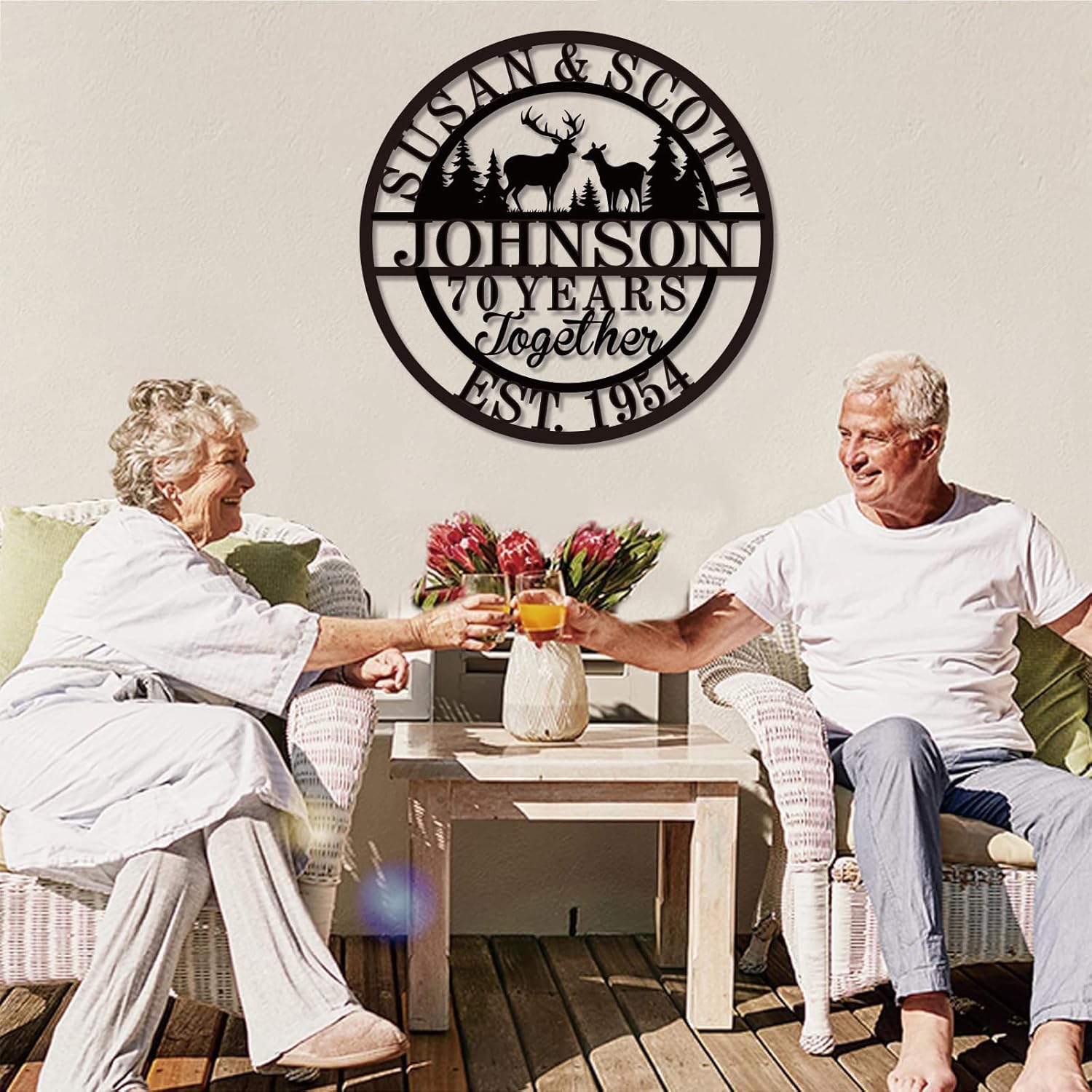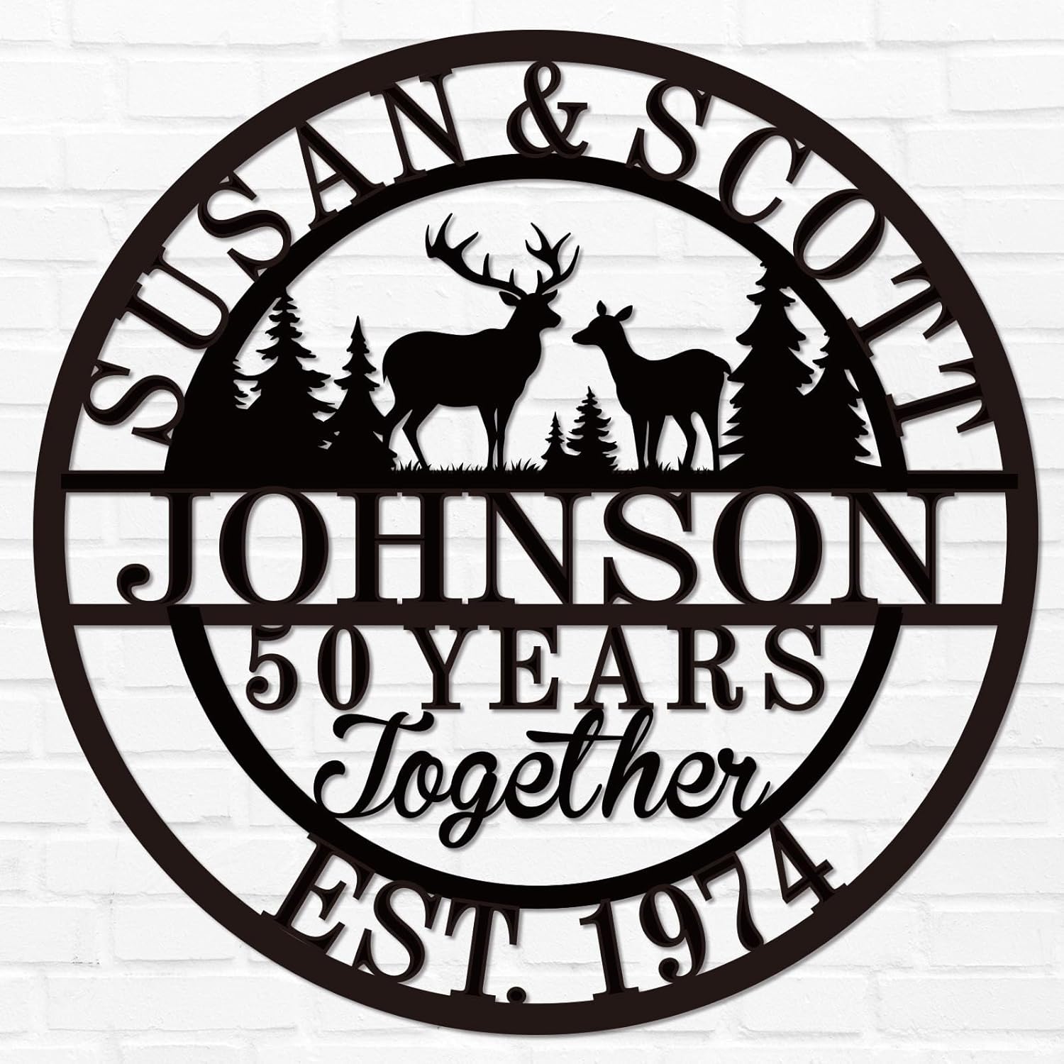 Personalized Christmas Gifts 2025, Custom 50th/40th/60th/70th/30th/1-99 Years Wedding Anniversary Sign Gifts for Couples Parents, Custom Metal Monogram Sign Personalized Family Name Signs (Deer)