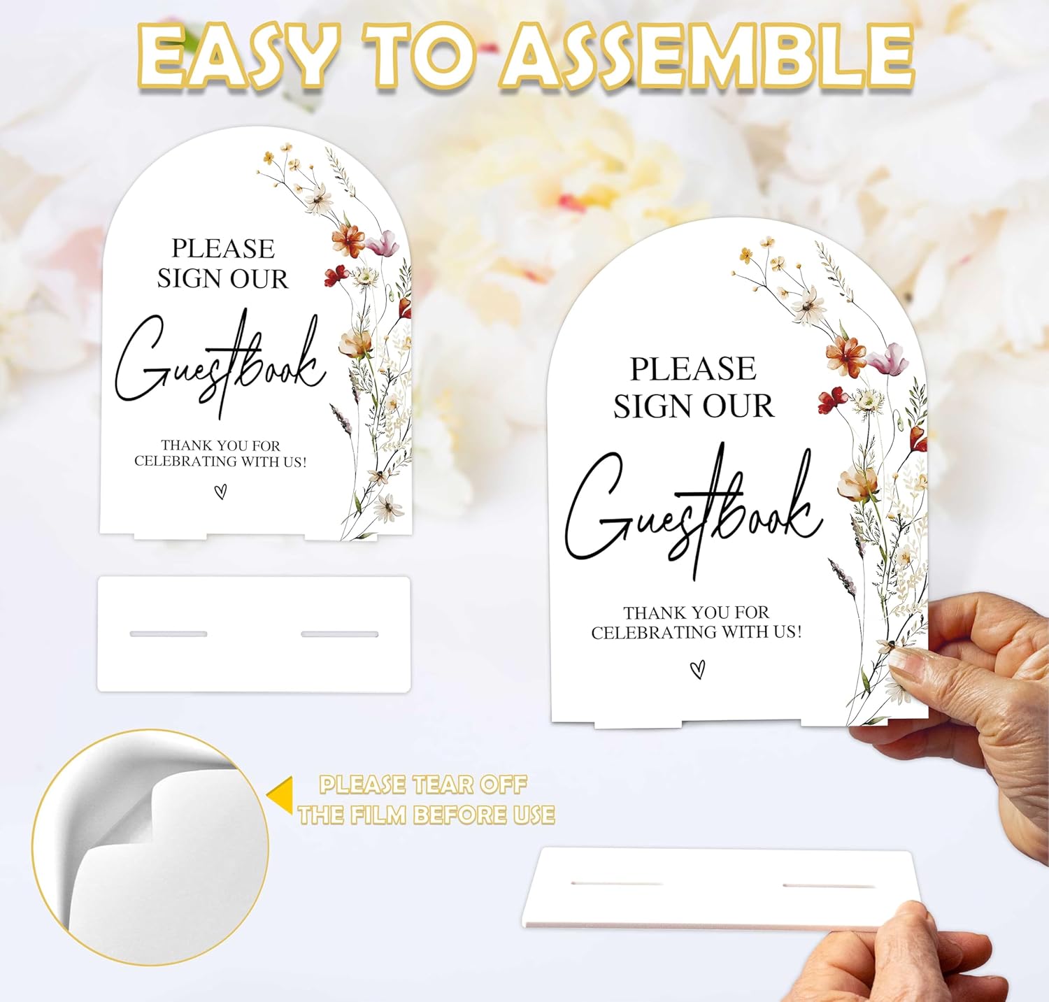 Boho Floral Please Sign Our Guestbook Sign, 6 x 8 Inch White Arch Acrylic Wedding Sign with Holder, Wedding Sign for Ceremony and Reception, Wedding Decoration, Wedding Supplies - BX02