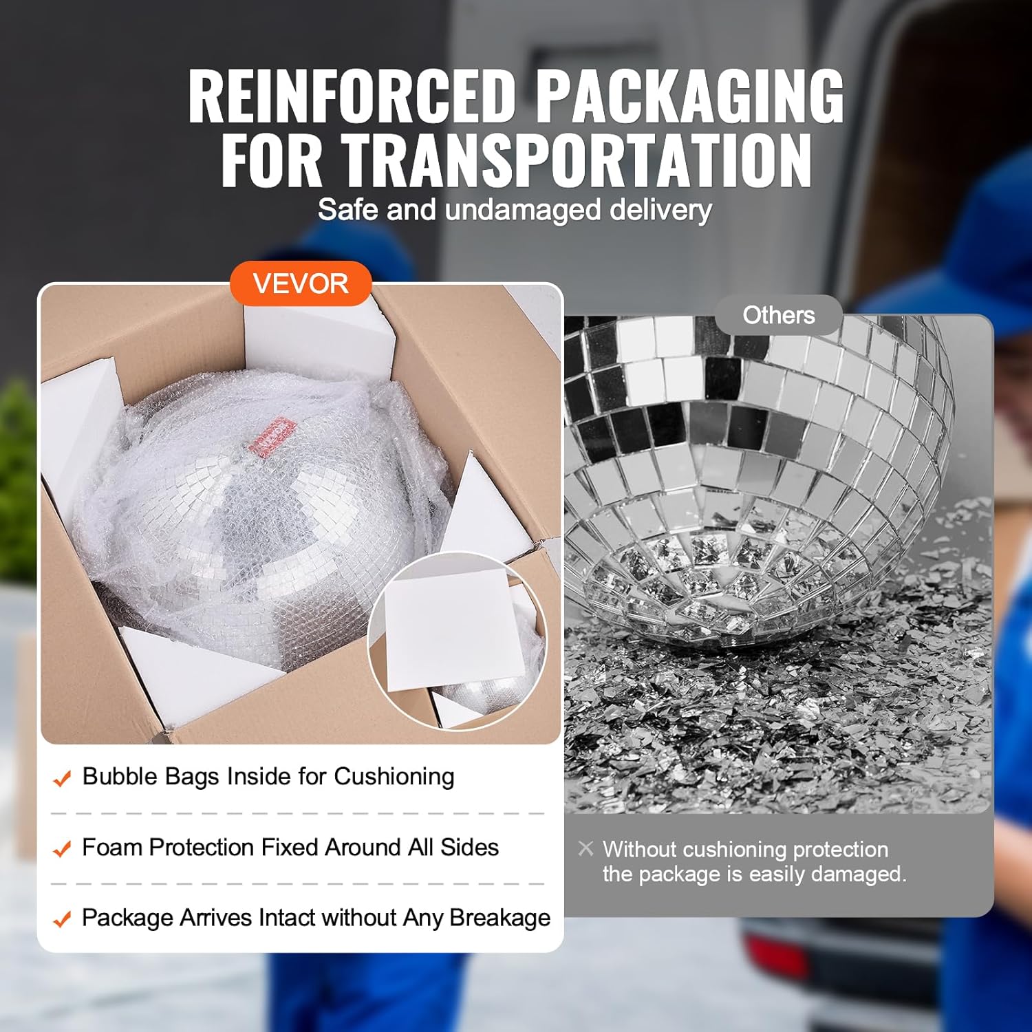 - Safe Shipping: We take extra care when packaging your disco ball deco. It’s wrapped in bubble cushioning, with foam reinforcements in the corners to keep it safe during transit, so it arrives ready to shine!