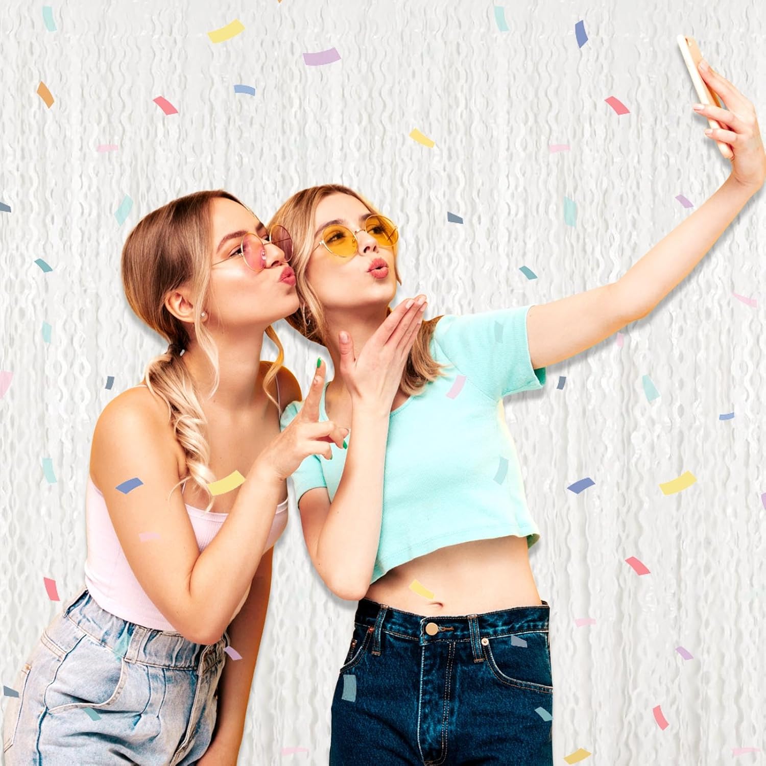 4 Pack Macaron White Wave Foil Fringe Curtain Backdrop, 3.28Ft x 8.2Ft Metallic Tinsel Foil Fringe Streamer Curtains for Photo Booth, Mother's Day, Easter, Birthday, Wedding Party Decoration