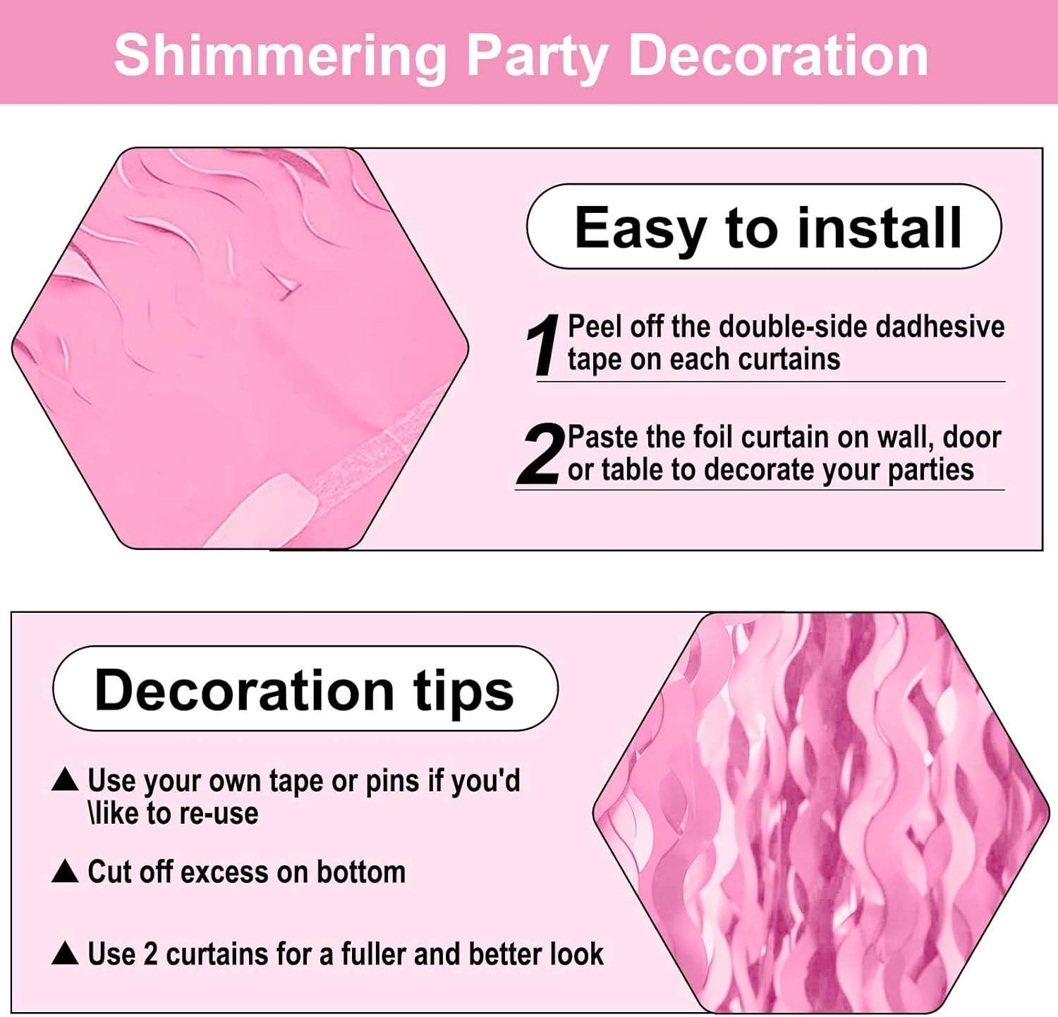 - Easy To Assemble | Strong Adhesive | Not Easy Fade : The foil fringe curtain backdrop party decorations come with double-sided adhesive tape, easy to use, just tear off the back of adhesive tape, then paste this streamers backdrop curtains on the top of wall, window, table, or as door fringe decoration.