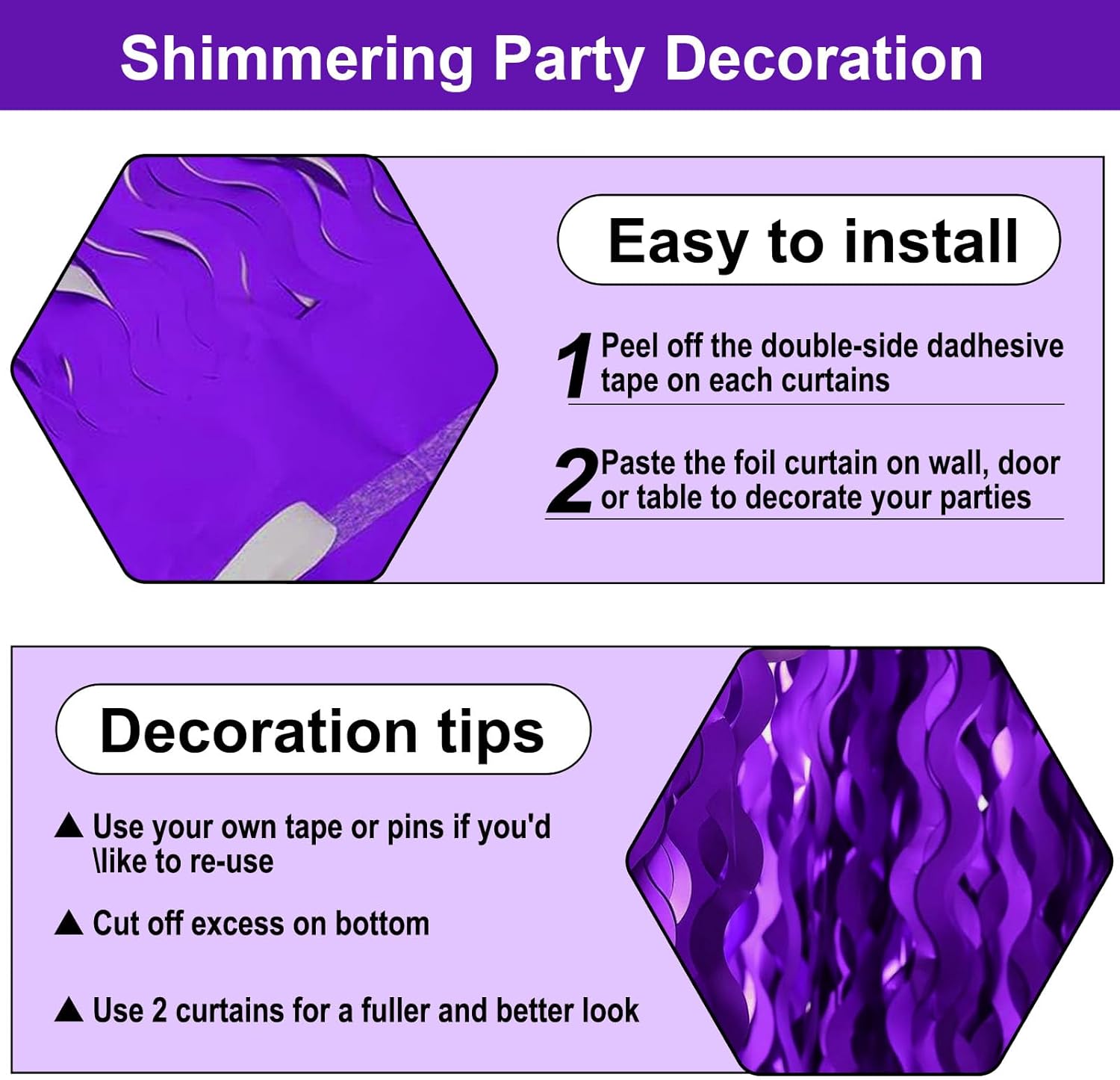 - Easy To Assemble | Strong Adhesive | Not Easy Fade : The foil fringe curtain backdrop party decorations come with double-sided adhesive tape, easy to use, just tear off the back of adhesive tape, then paste this streamers backdrop curtains on the top of wall, window, table, or as door fringe decoration.