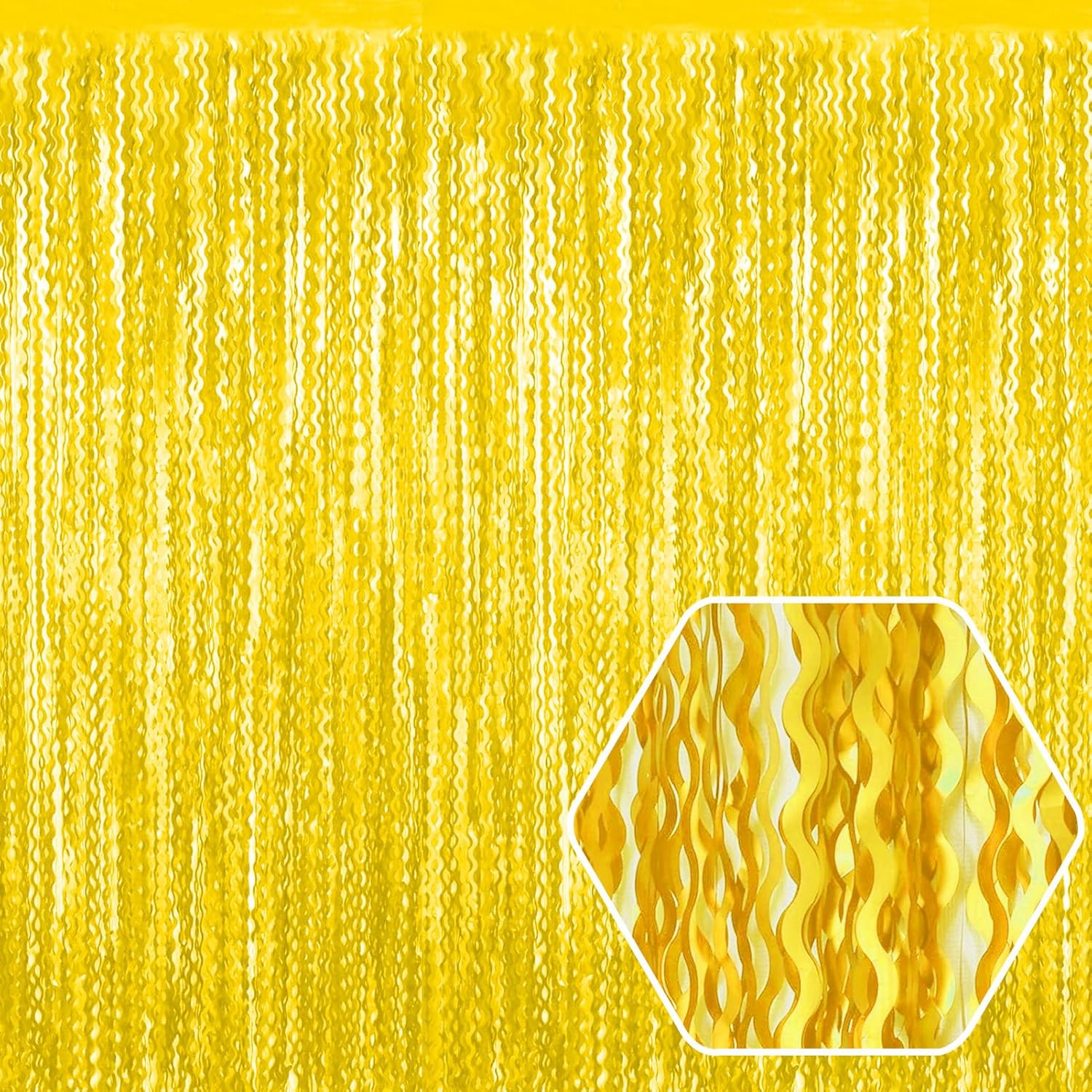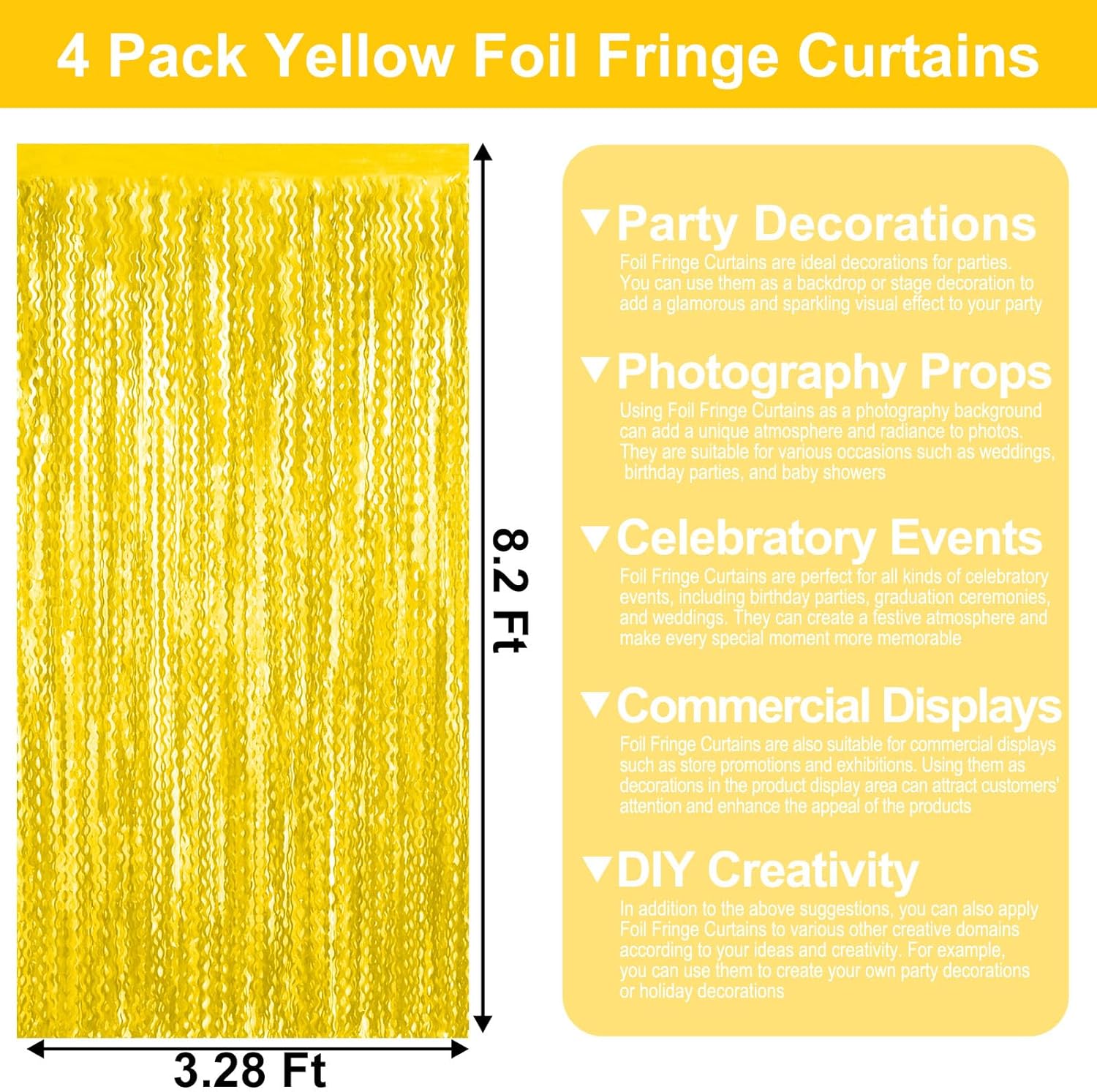 4 Pack MacaronYellow Wave Foil Fringe Curtain Backdrop, 3.28Ft x 8.2Ft Metallic Tinsel Foil Fringe Streamer Curtains for Photo Booth, Mother's Day, Easter, Birthday, Wedding Party Decoration