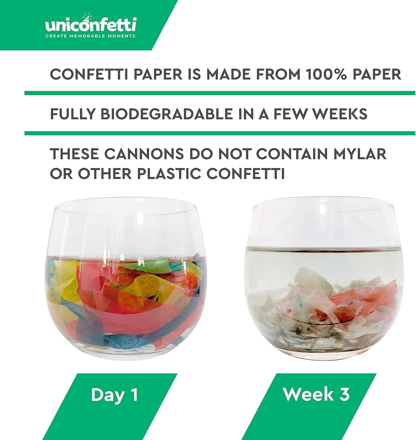 - π 100% BIODEGRADABLE & SAFE - Confetti are made of lightweight fire resistant papers, 100% biodegradable. Color dye is non-toxic and won't rub onto your clothing. 100% safe for your party and good for the environment.