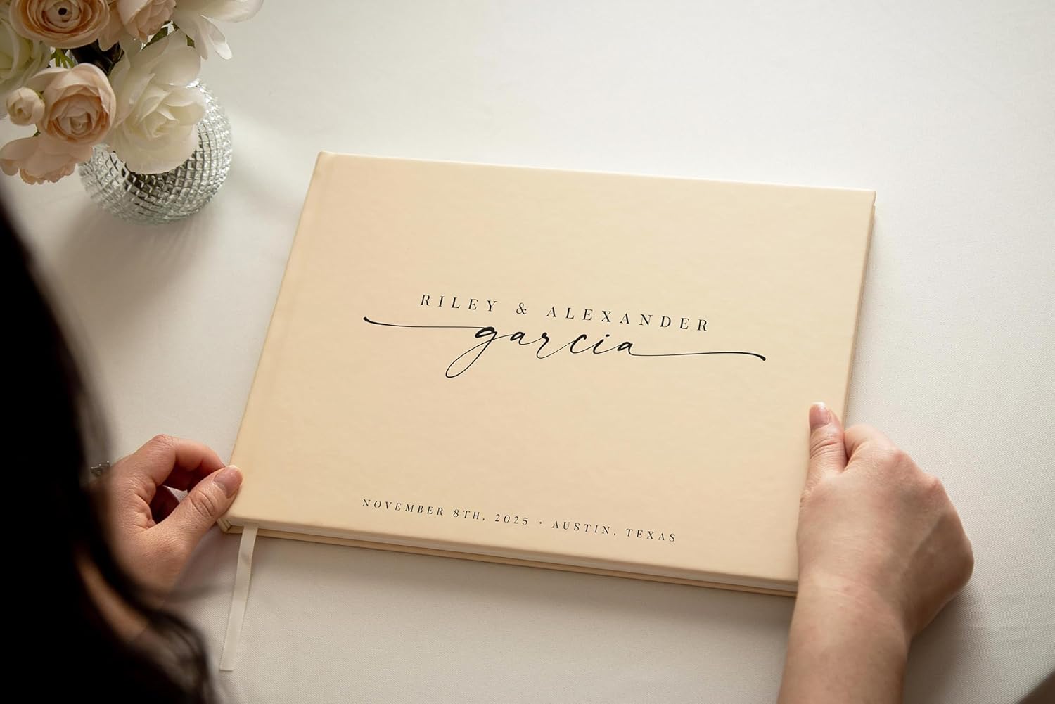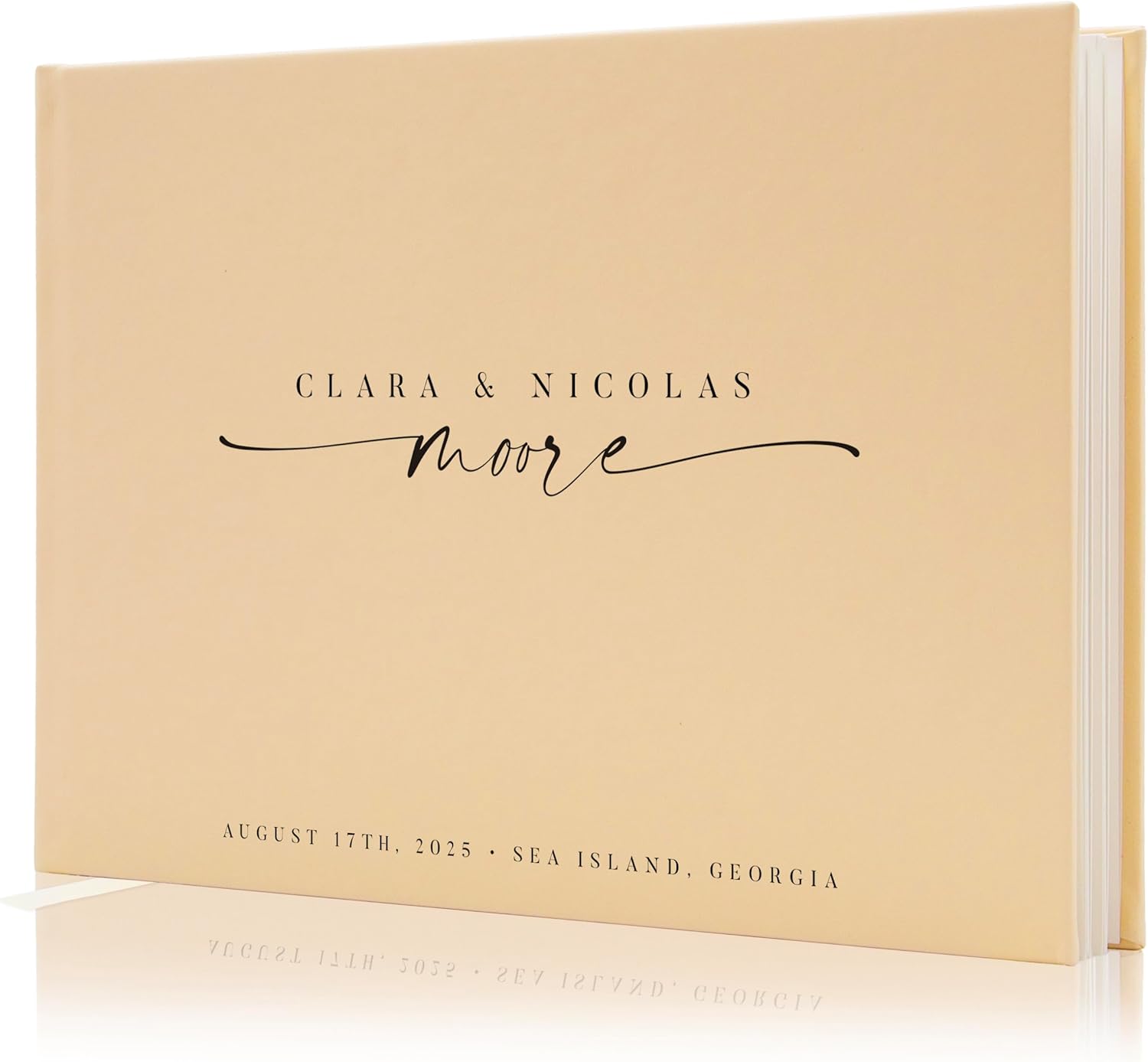 - Make your special day unforgettable with our Personalized Guest Book. Enjoy the hardcover with a soft smooth texture. Perfect for weddings, bridal showers, anniversaries, and more, this elegant keepsake allows your guests to leave heartfelt messages and well wishes, creating cherished memories that will last a lifetime.