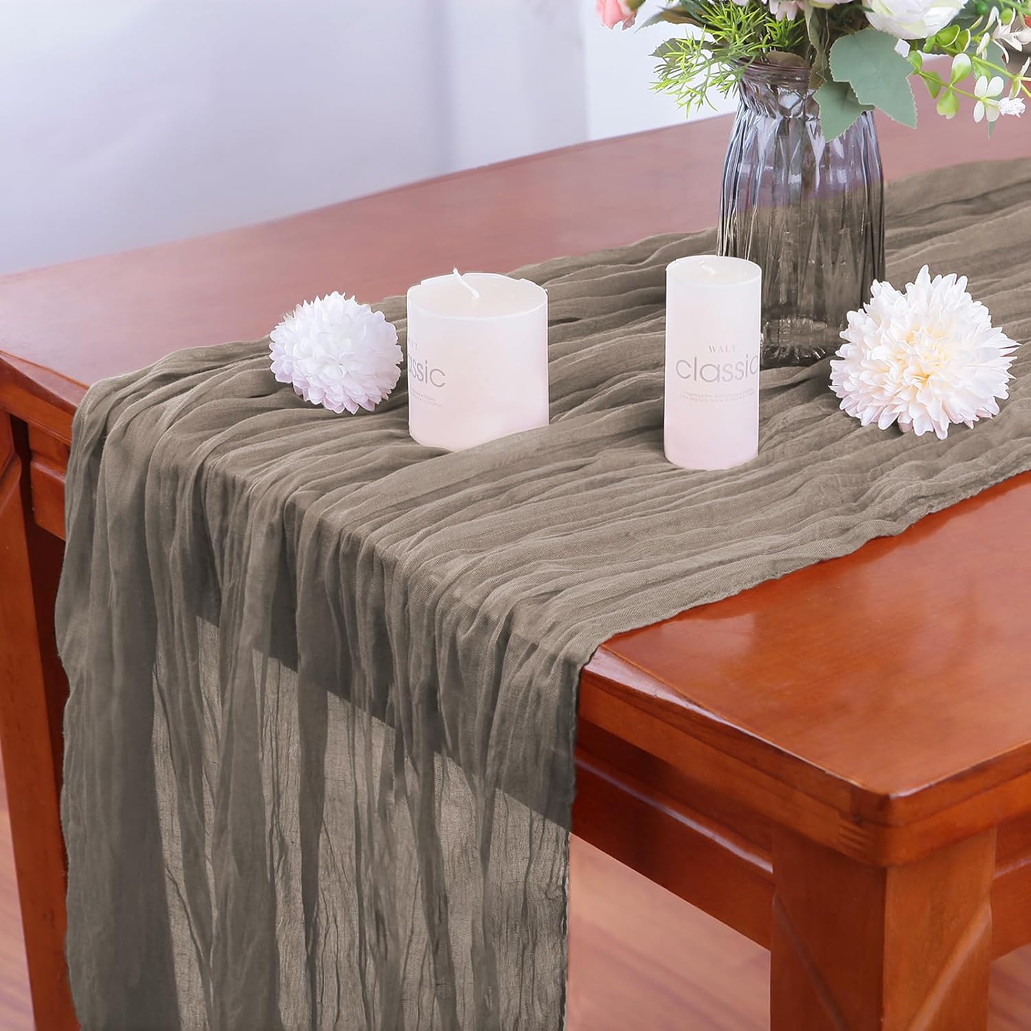 - 🌹【Gorgeous Looking】Our cheese cloth table runner are meticulously crafted from 100% polyester fabric, fine and dense texture, smooth and soft when touched, our gauze table runner is truly an excellent decoration for your table. This rectangular natural pleats table runners has a rustic elegant look, the cheesecloth table runners are an easy way to add texture to your table decor. Let the vintage gauze table runners drape gracefully across your table and flow loose onto the floor, you will find it perfect to create beautiful folds, and adds a sophisticated, soft, beautiful touch to your table at any event, especially matching with bohemian, modern, chic or any other themes.