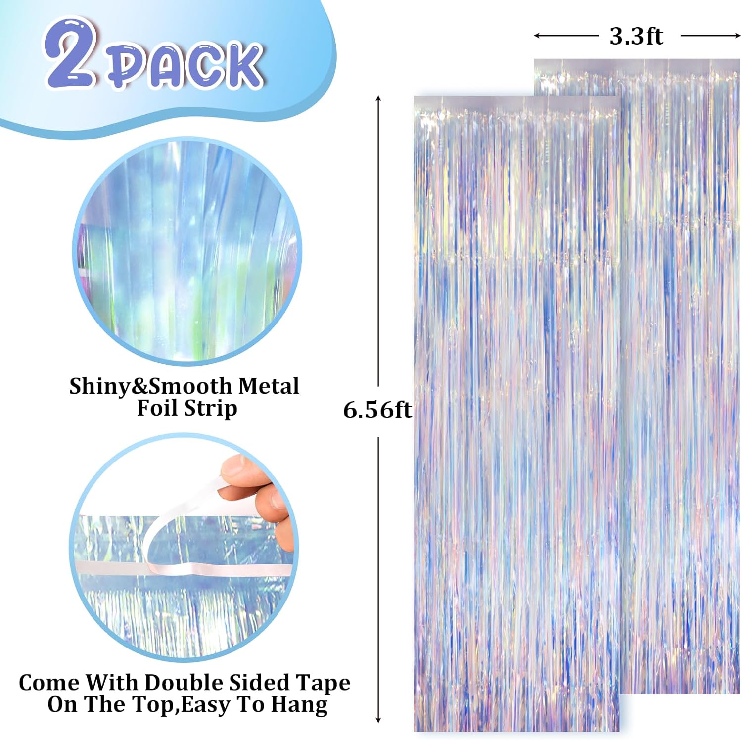 - Stunning Decorative Set: You'll receive 2 pcs iridescent foil fringe backdrop curtains, each measuring 3.28 ft (wide)×6.56 ft (drop). Enough length foil fringe curtains backdrops are perfect for the door or wall to create an impressive decoration