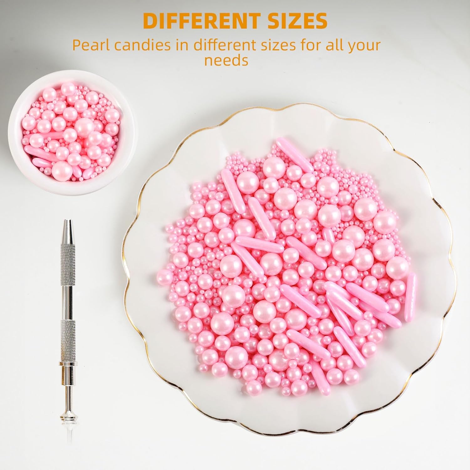 - 【Excellent Material】: Pink sprinkles for cake decorating are made of food-grade safe ingredients, you can eat them with confidence. It can be eaten by men, women, old and young. The 4-claw pick up tool is made of stainless steel material, durable and retractable, it allows you to clamp and place pearl sugar smoothly.