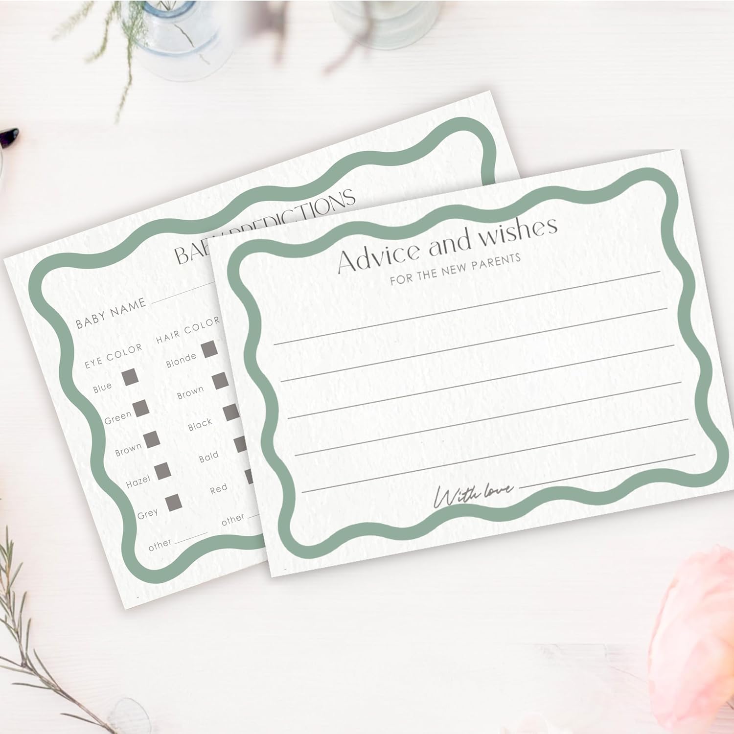 Advice For New Parents Baby Shower, Baby Predictions & Advice Cards For Baby Shower Games Activities, Wishes for Baby, 25 Double-Sided Thick Cards – Sage Green A09