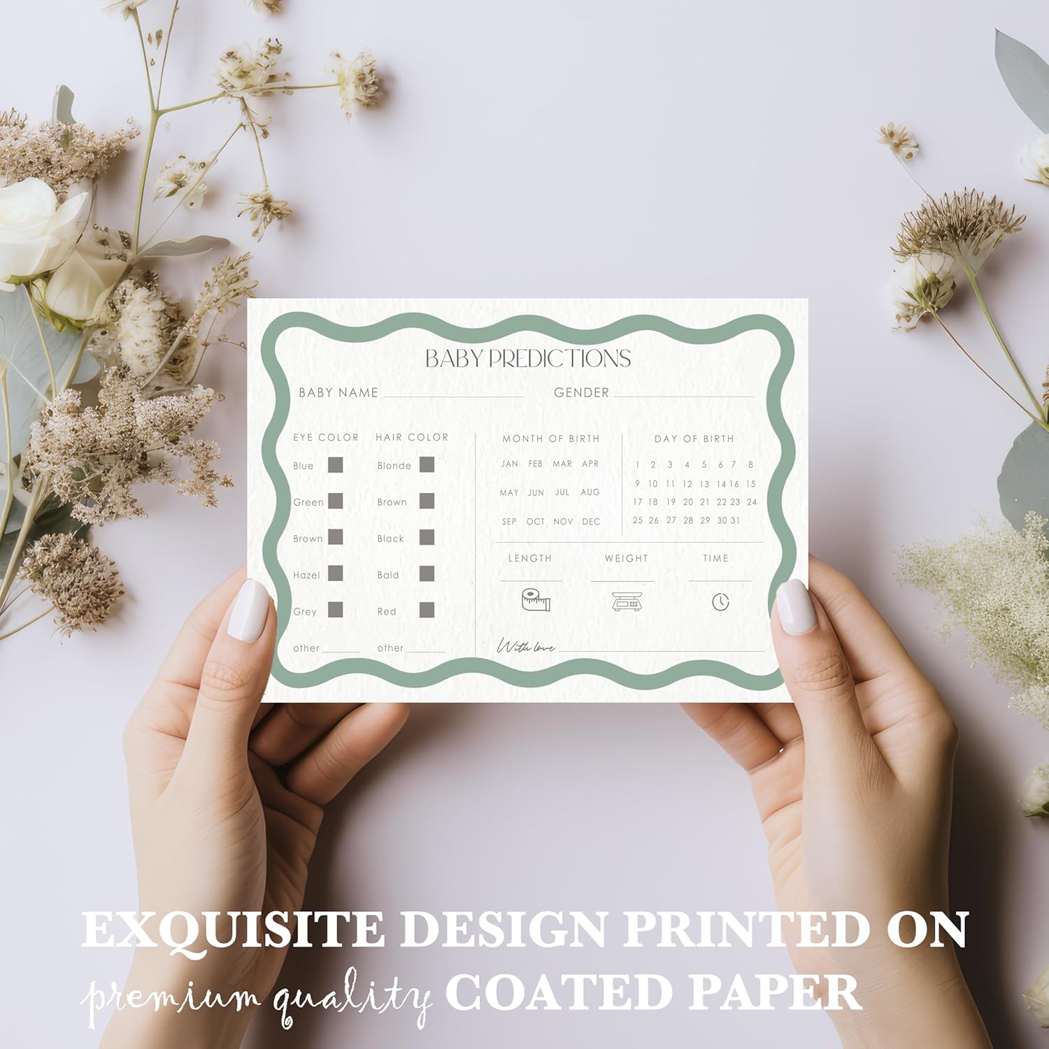 - Simple, Elegant Design: Minimalist style that looks great and works perfectly for baby shower activities and games