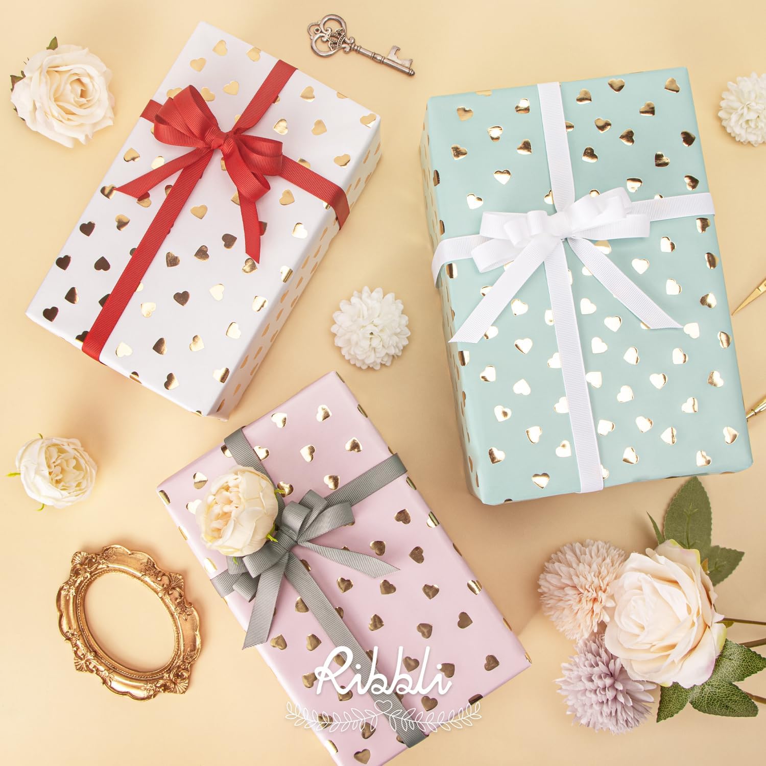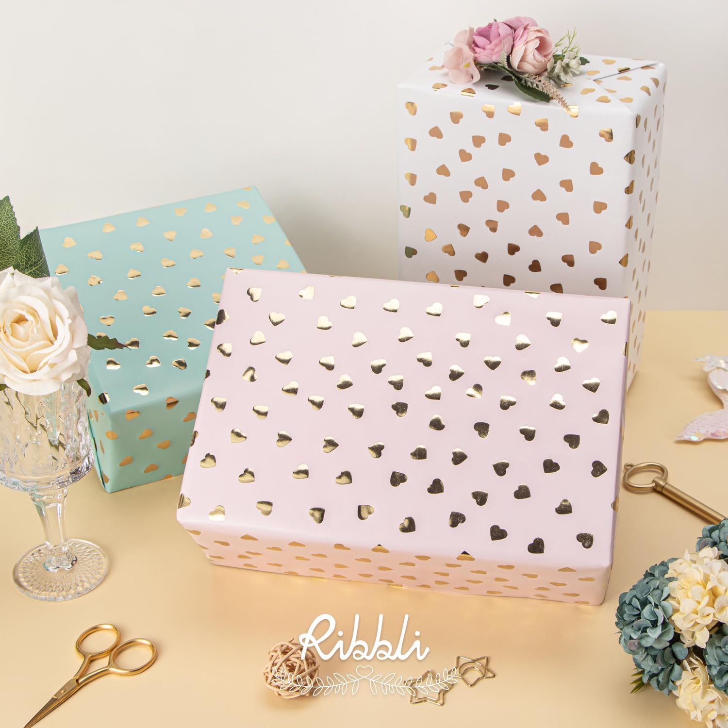 Ribbli Birthday Wrapping Paper Heart Foil Mini Roll Gift Wrap for Women Girls Anniversary Mother's Day Valentine’s Day Wedding 17 inch x 120 inch(10feet) Per Roll