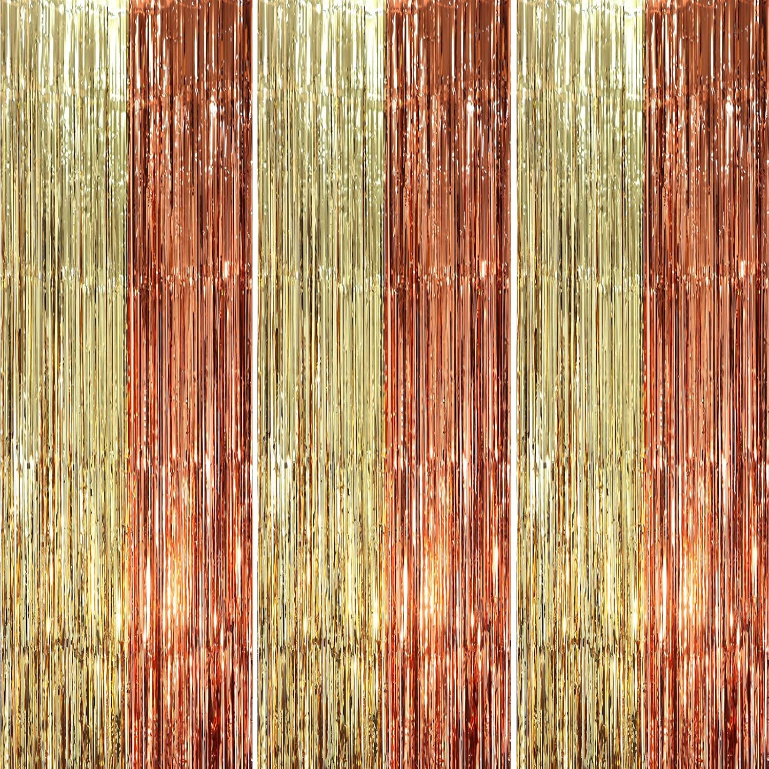 - Package Included: 3 packs of rose gold and champion foil fringe curtains, the size of the foil curtain is 3.3*8.2ft. It's long enough to fit any occasion