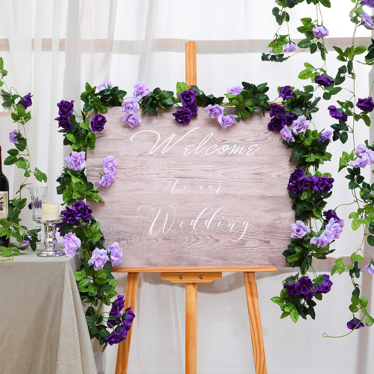 Floweroyal 6 Pack Artificial Flower Garlands 7.9FT Fake Rose Vines Silk Flowers Hanging Rose Ivy for Wedding Arch Party Home Garden Wall Decor (Purple)