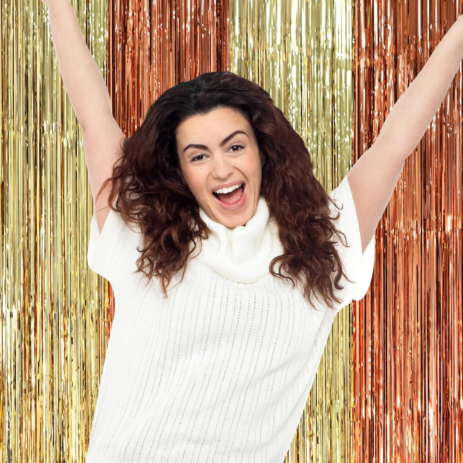 - Premium Material: This rose gold and champion backdrop decoration is made of tinsel, non-toxic, odorless, and non-fading. Unfold it and then enjoy your glittering party