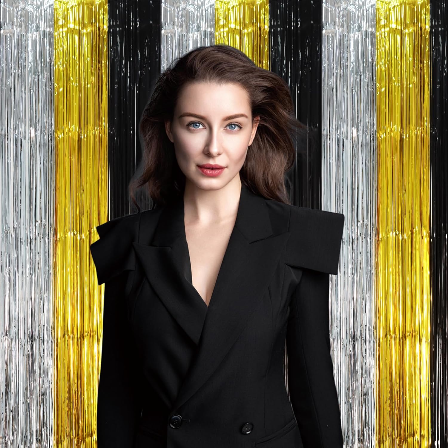 - Widely Applications: This black gold and silver shimmer streamer foil curtain is perfect for New Years