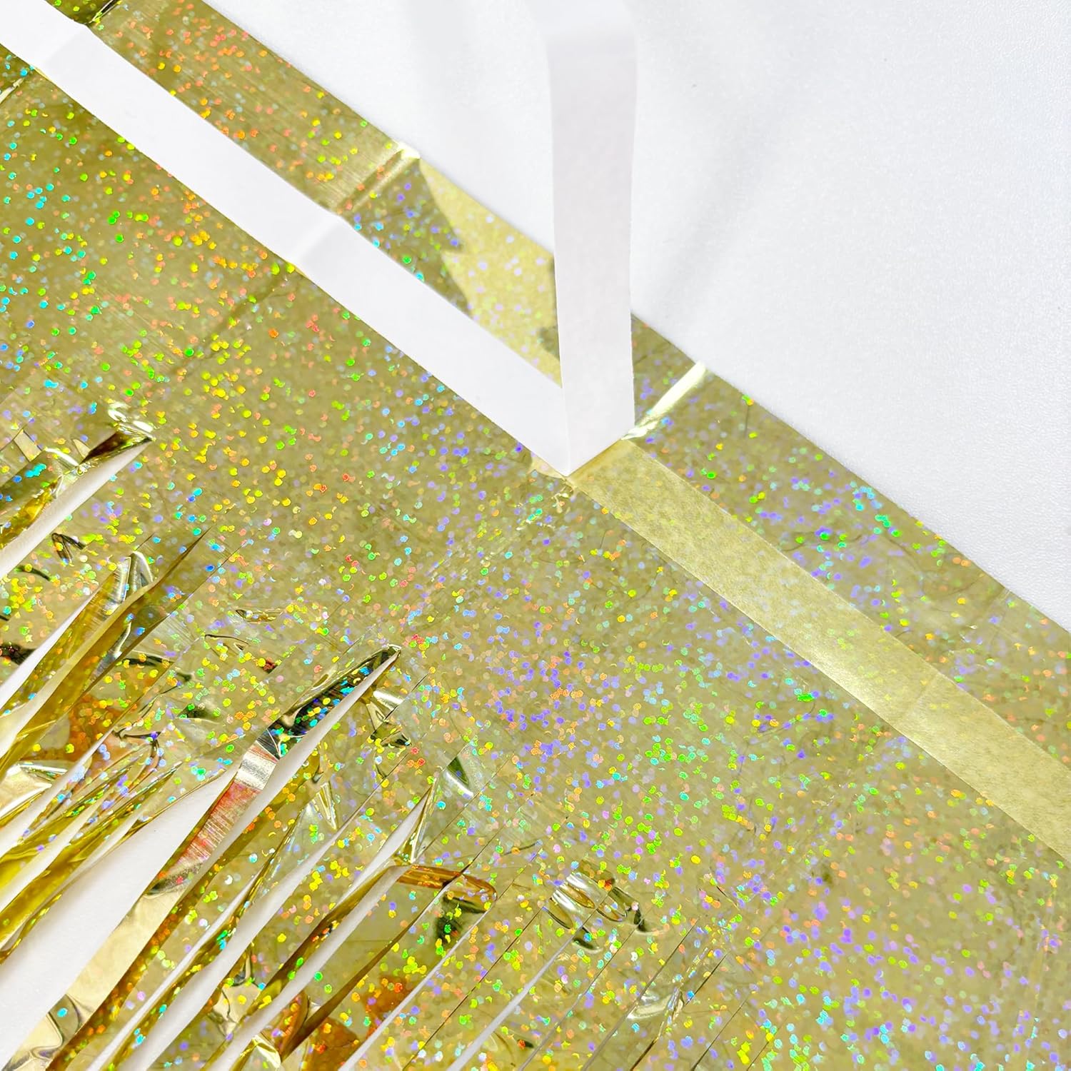- 3.2 ft x 8.2 ft gold fringe backdrop is long enough serving as a dazzling photo backdrop for parties, events, and photo booths.