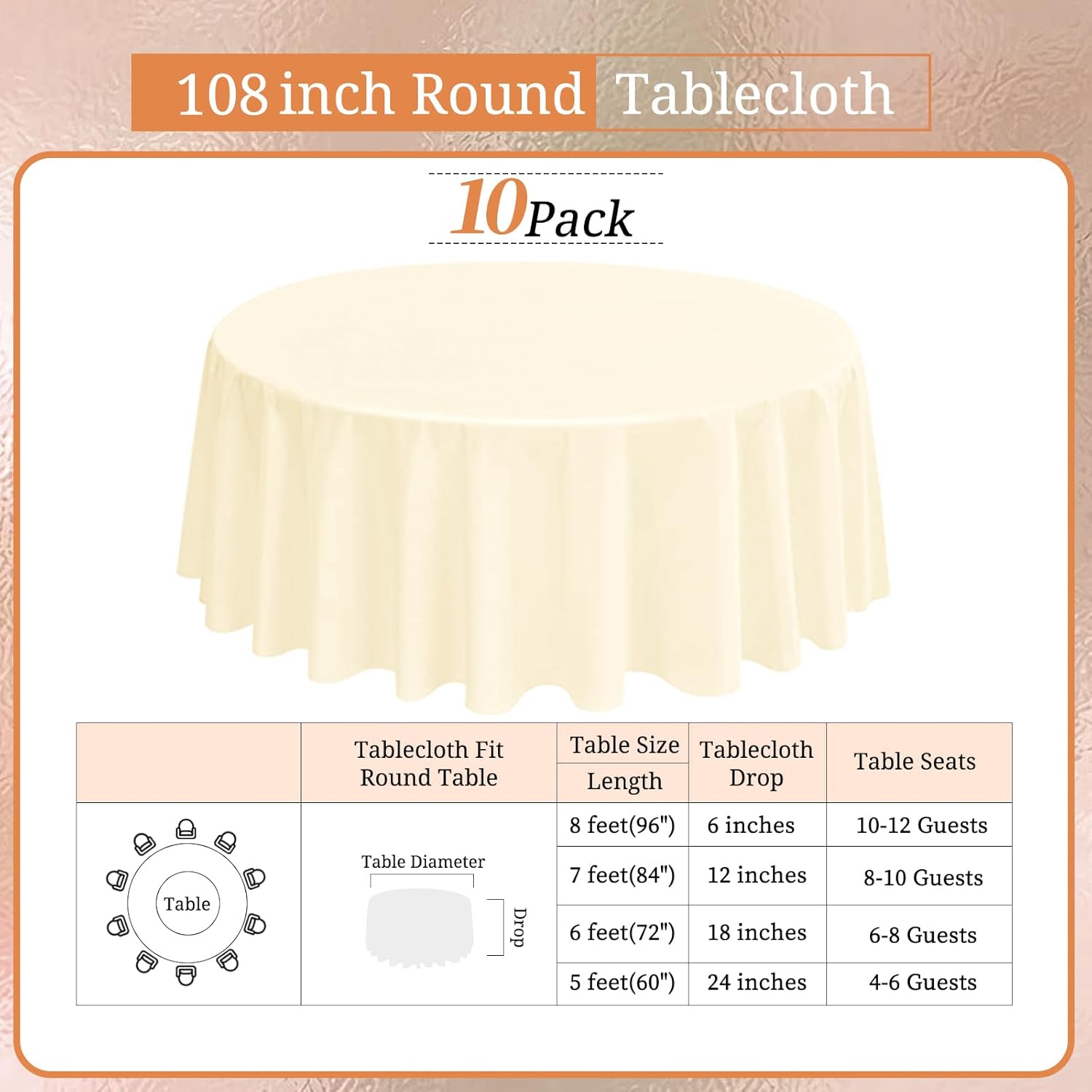 10 Pack Round Tablecloths - 108 Inch, Beige Polyester Table Cover for Round Tables, Stain and Wrinkle Resistant Washable Fabric Table Cloth, Polyester Tablecloth for Wedding Banquet Partie