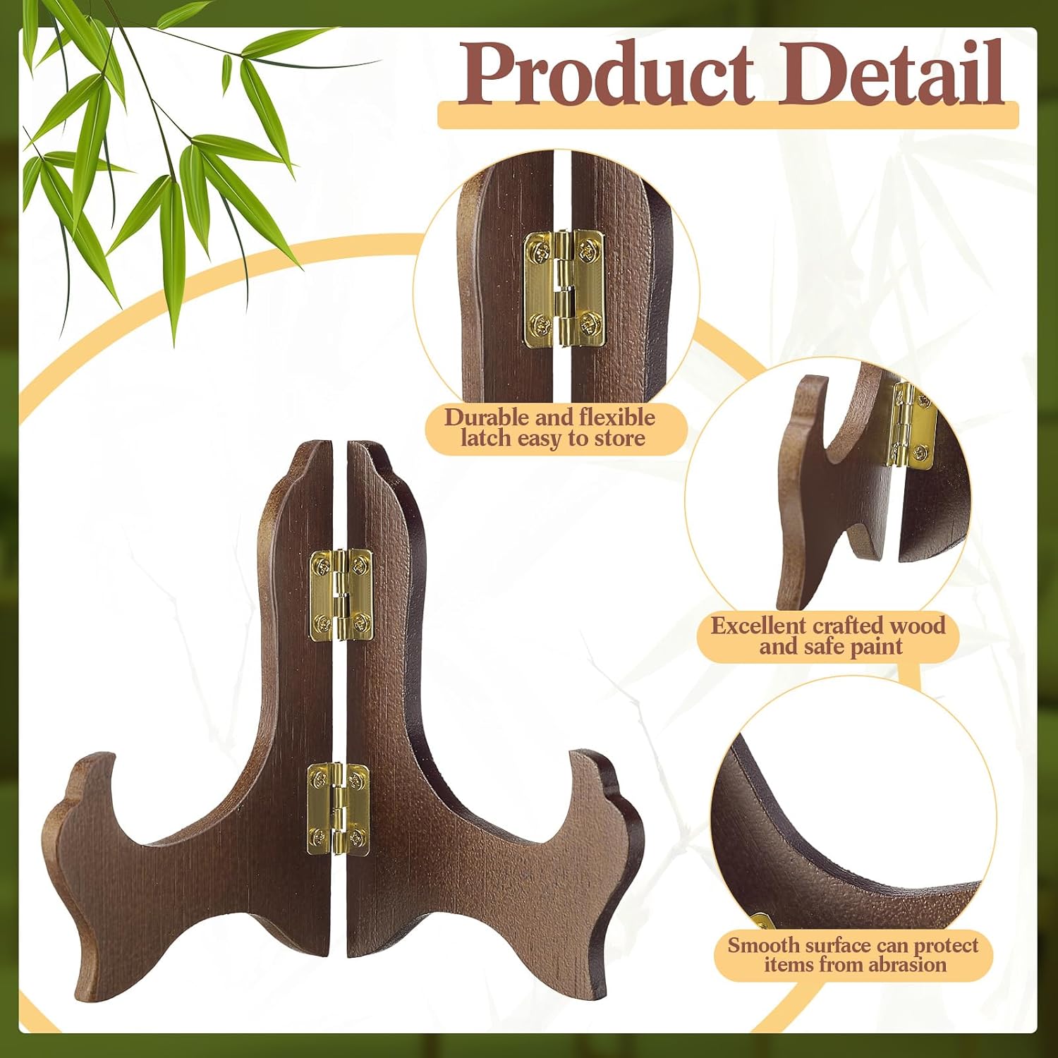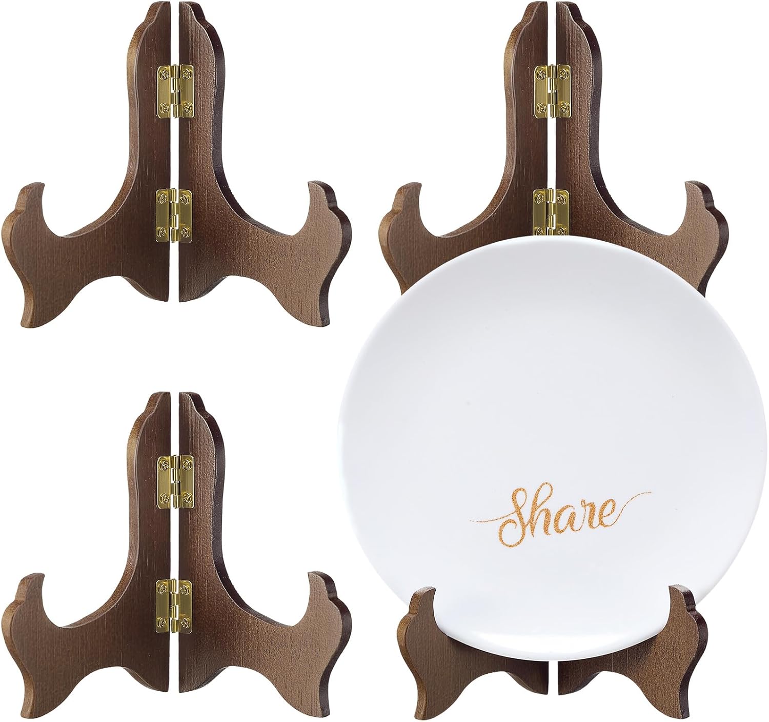 Tatuo 4 Packs Wooden Display Stand Decorative Plate Stands for Display Picture Frame Holder Easels(Brown,4 Inch)