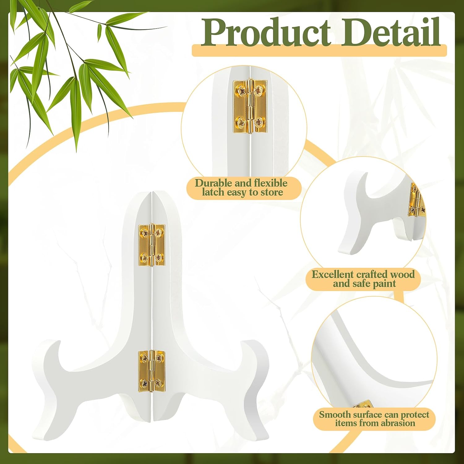 - Solid material: the wooden display easel is made of excellent crafted wood, painted white with gold latch; Solid construction, stable and sturdy; Contoured edges and hinges to fold flat for easy to store