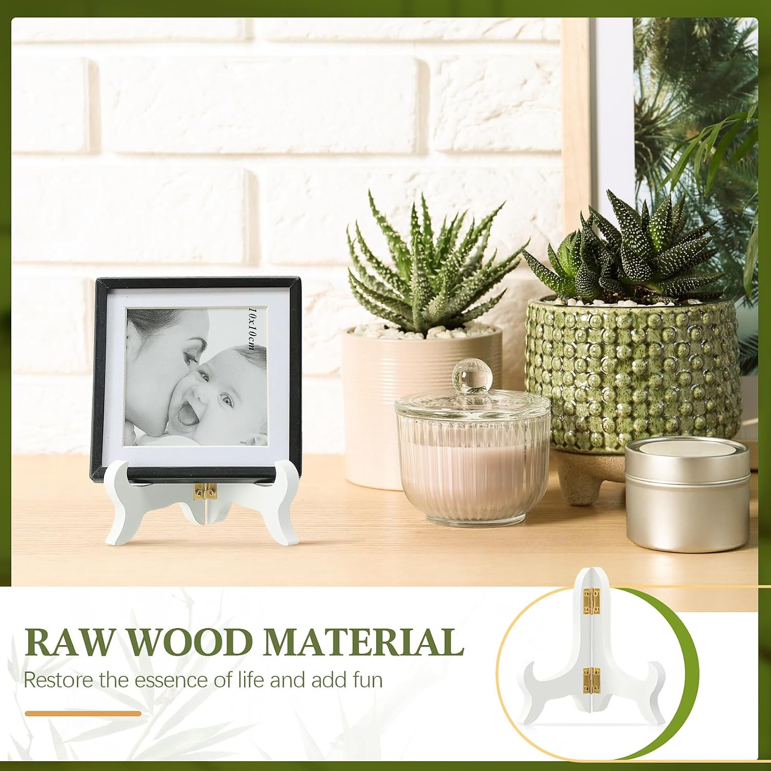 Tatuo 4 Packs Wooden Display Stand Decorative Plate Stands for Display Picture Frame Holder Easels(White,4 Inch)