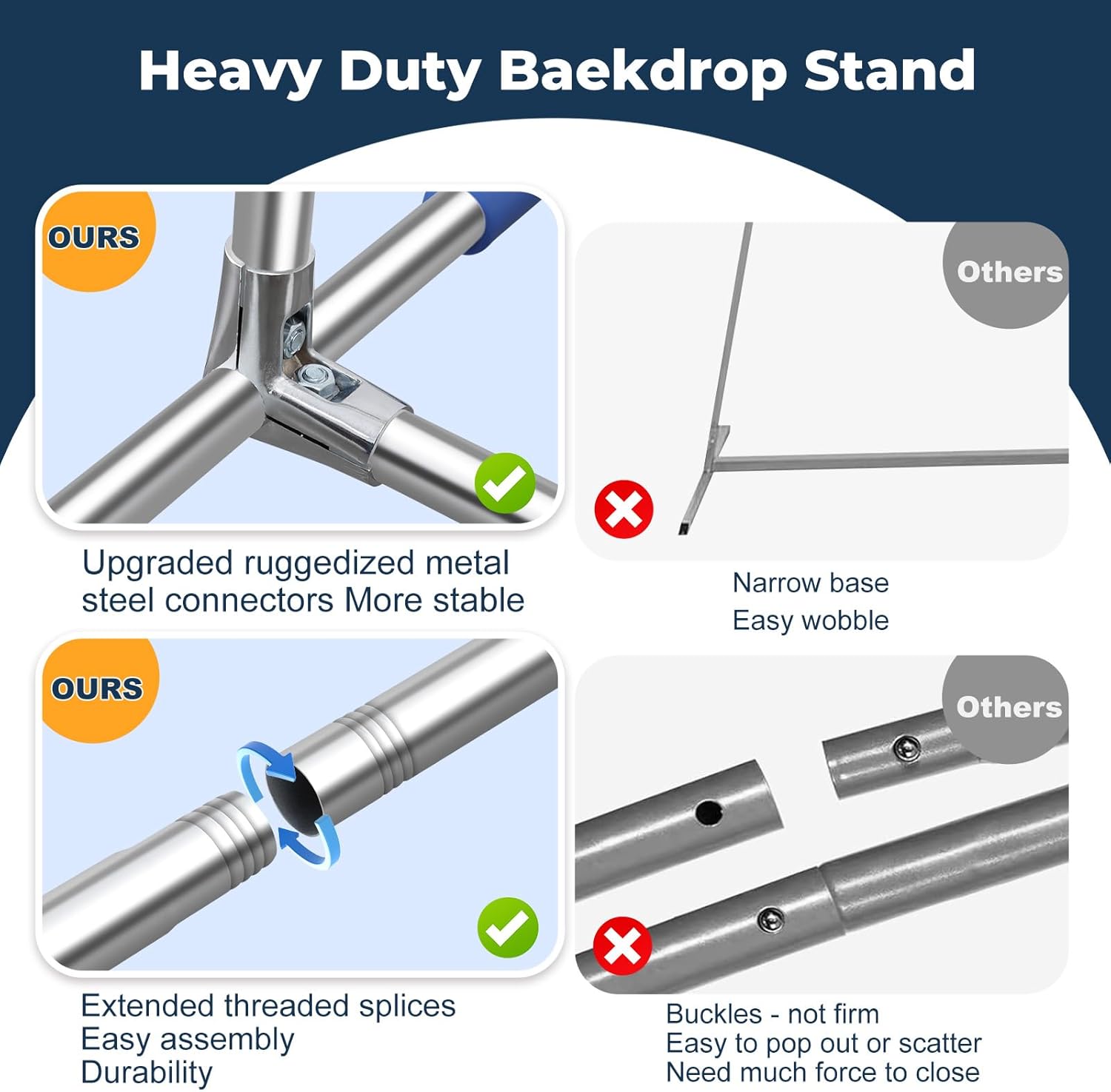 - ✅ Sturdy & Stable Design - Reinforced wide-leg base and thickened metal tubes ensure maximum stability, supporting heavy backdrops, floral arrangements, and lighting without wobbling.