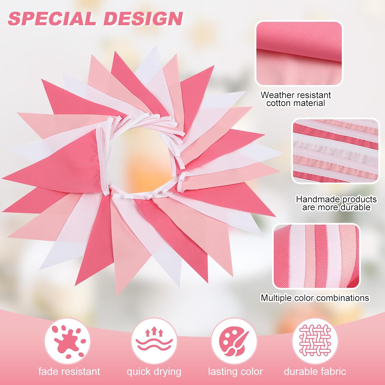 - Versatile Decoration: Ideal for weddings, birthdays, baby showers, graduations, and more, this 33ft long garland features 30 vibrant pink white pennant flags.