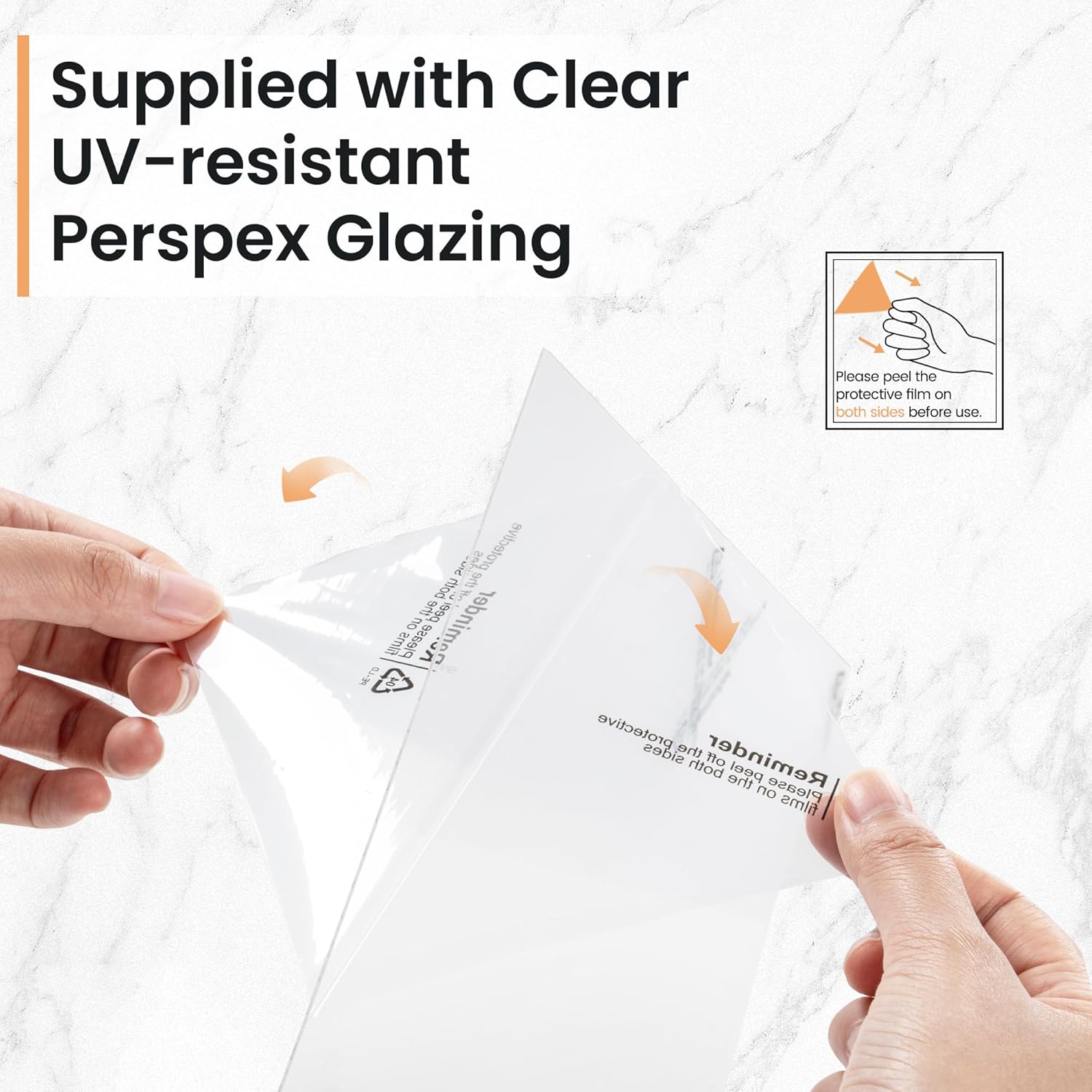 - High-Quality: Our 12x16 picture frame is made of environmentally friendly plastic, strong and durable. With a moisture-proof backplane design, the angle is hand-polished to stop scratching your skin. Use a polished polycarbonate board front to see your photos clearly.
