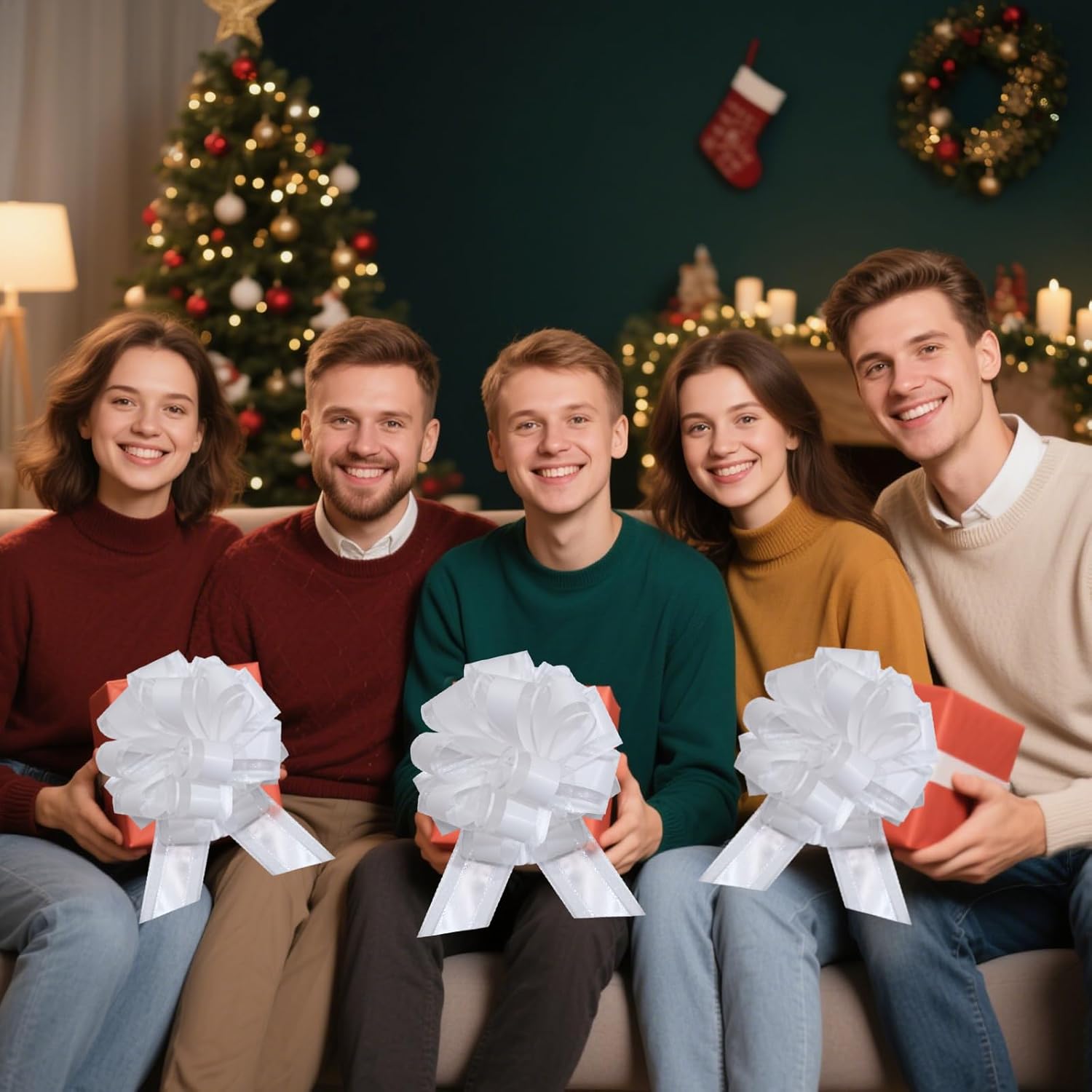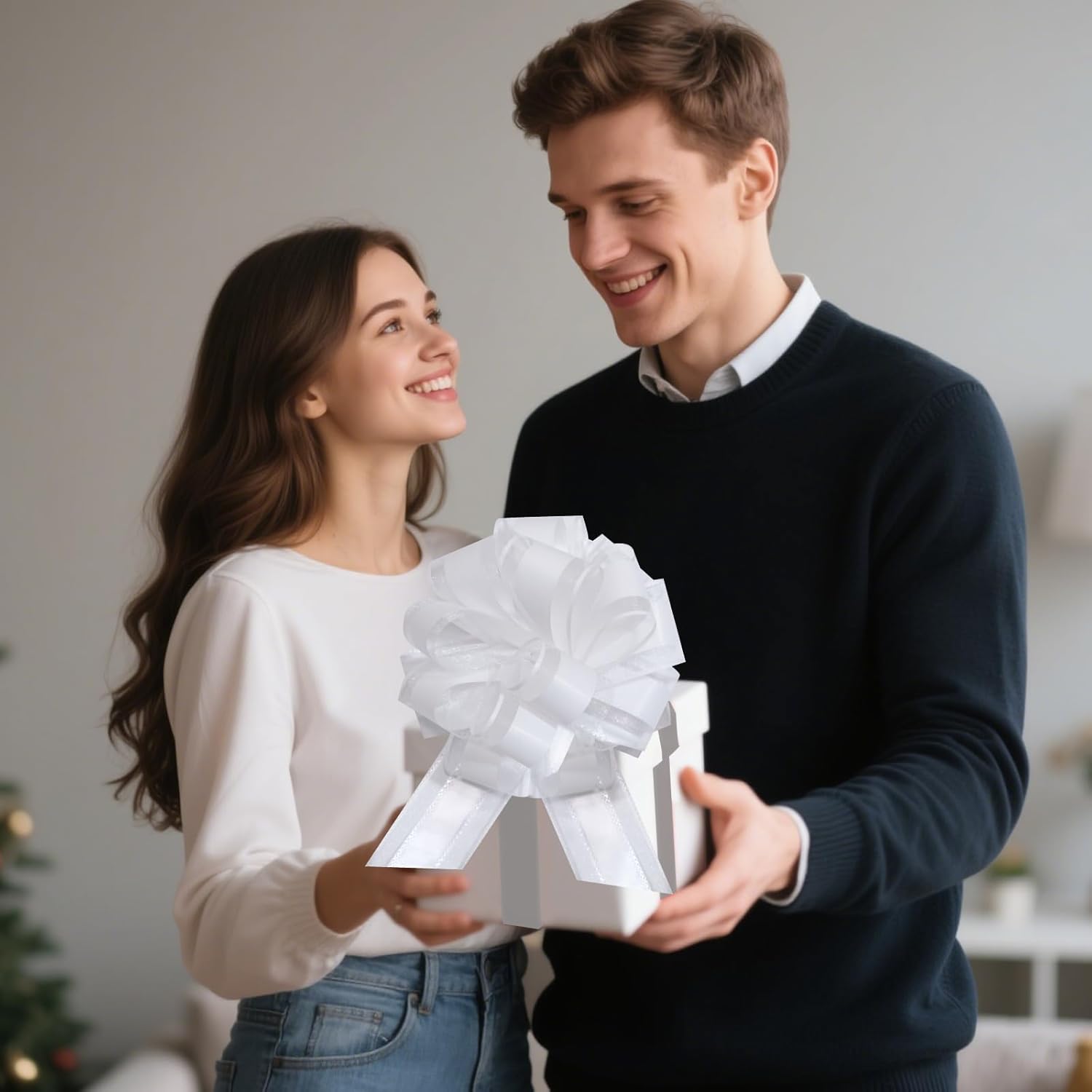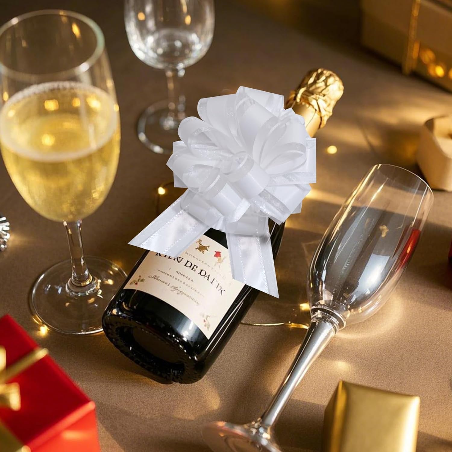 6 PCS 6 Inch Organza White Pull Bows - Perfect for Gift Wrapping, Wedding Decor, Car Bows, Birthday Parties, Christmas, and Valentine's Day
