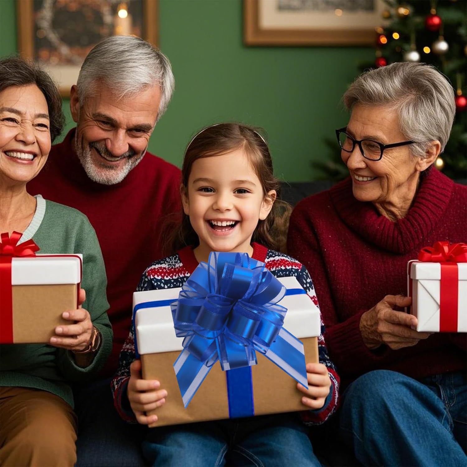 6 PCS 6 Inch Organza Blue Pull Bows - Perfect for Gift Wrapping, Wedding Decor, Car Bows, Birthday Parties, Christmas, and Valentine's Day