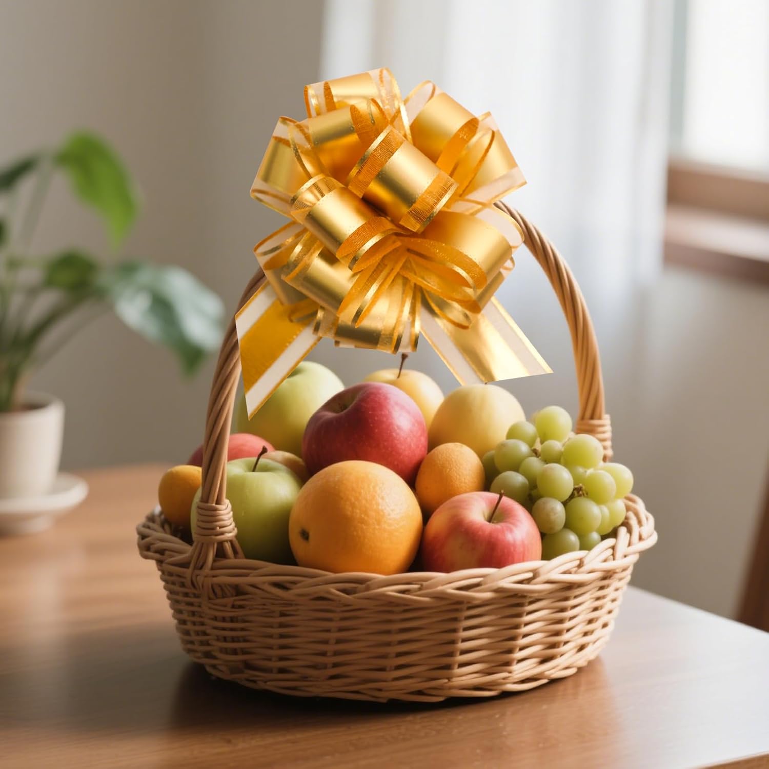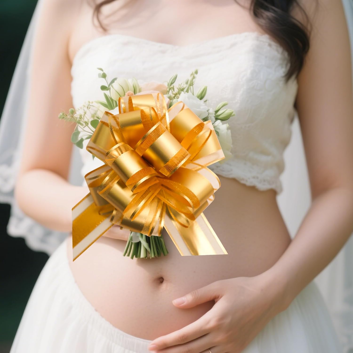 6 PCS 6 Inch Organza Golden Pull Bows - Perfect for Gift Wrapping, Wedding Decor, Car Bows, Birthday Parties, Christmas, and Valentine's Day