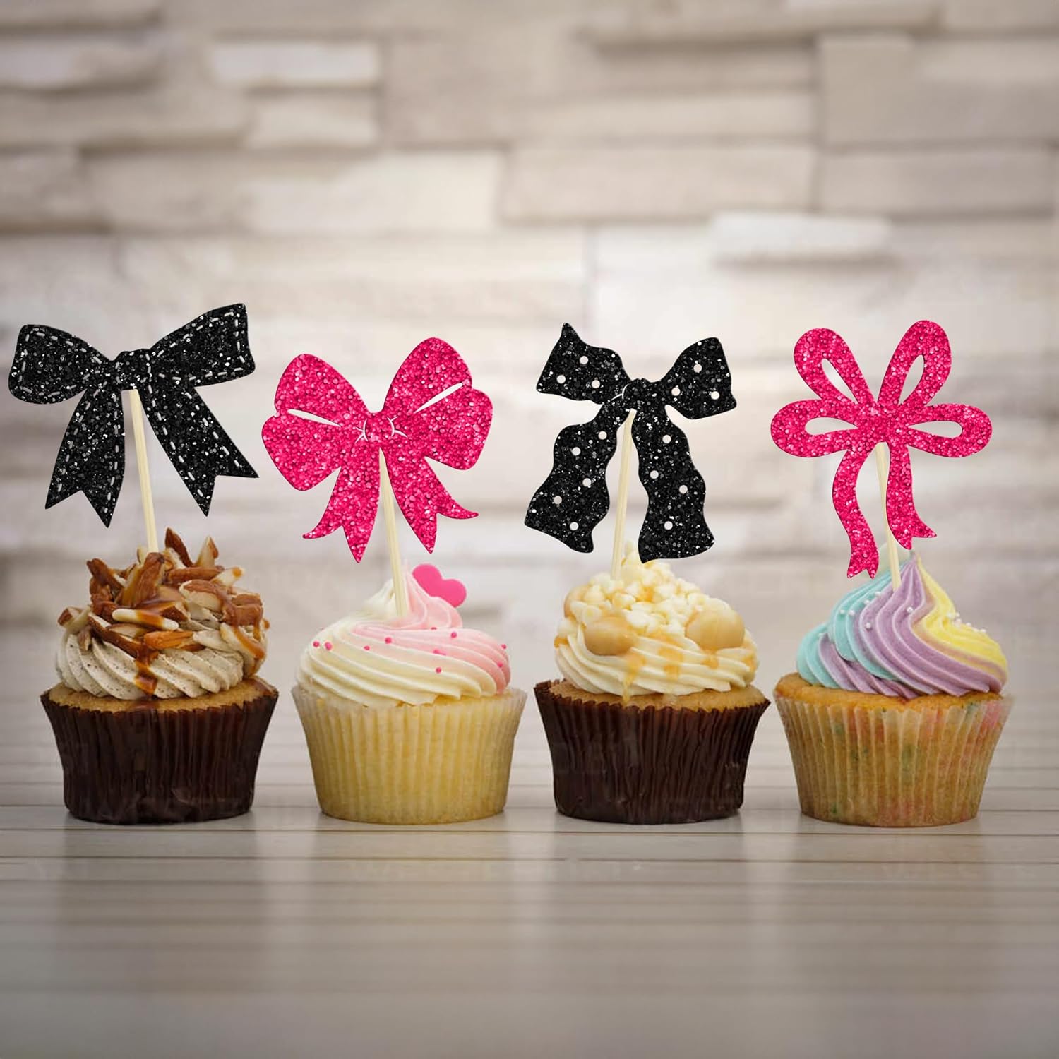 - 【NO Required】: Bow Cupcake Toppers can put in the cake directly! These Bow Cupcake Toppers saves your time and super easy to use. You can easily dress up your cakes, yes! but don't stop there, put them into desserts, cookies, fruit pieces, appetizers, muffins and so much more!