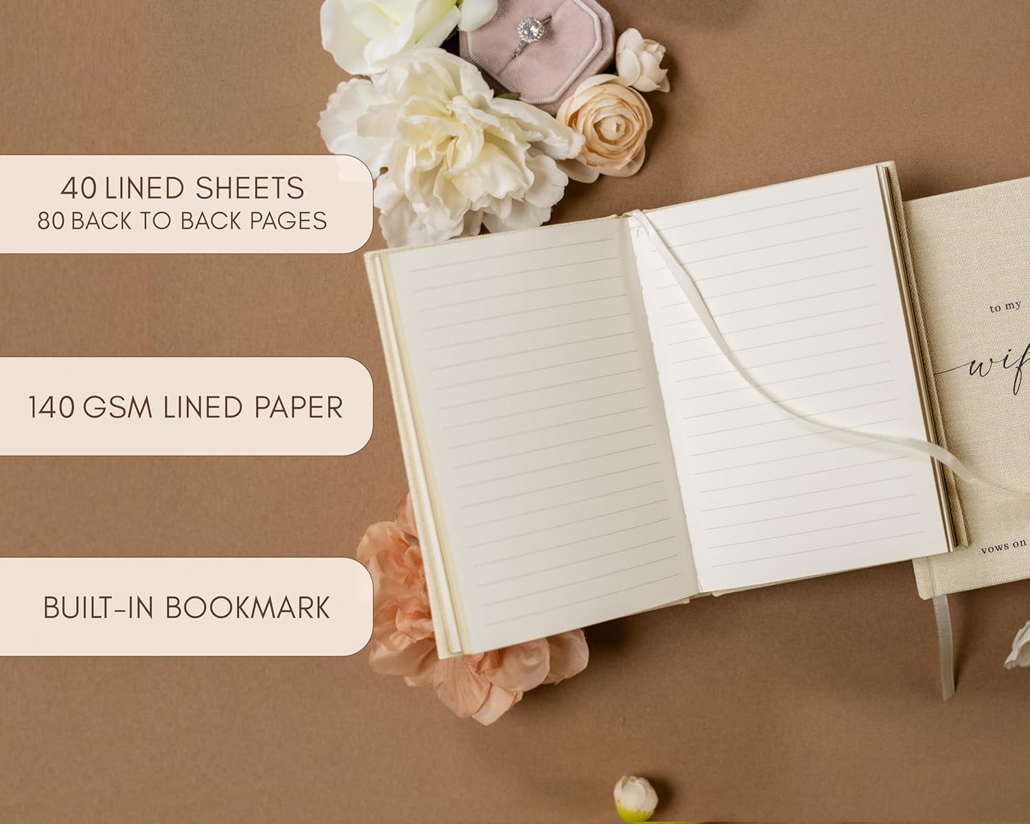 - Each vow book is meticulously crafted with 140 gsm paper, ensuring durability and a luxurious feel. Each book contains 80 lined pages with gold gilded edges, adding a touch of elegance to your wedding day prop or bridal shower gift.