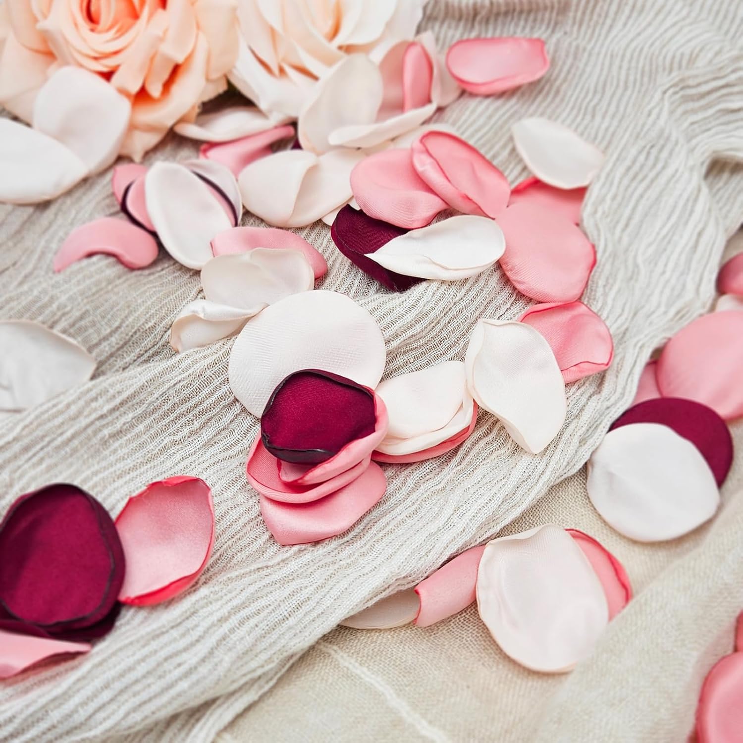 - These artificial flower petals are made with soft and premium Satin fabric for unwilted and reusable, which is more economical and eco-friendly than fresh petals.