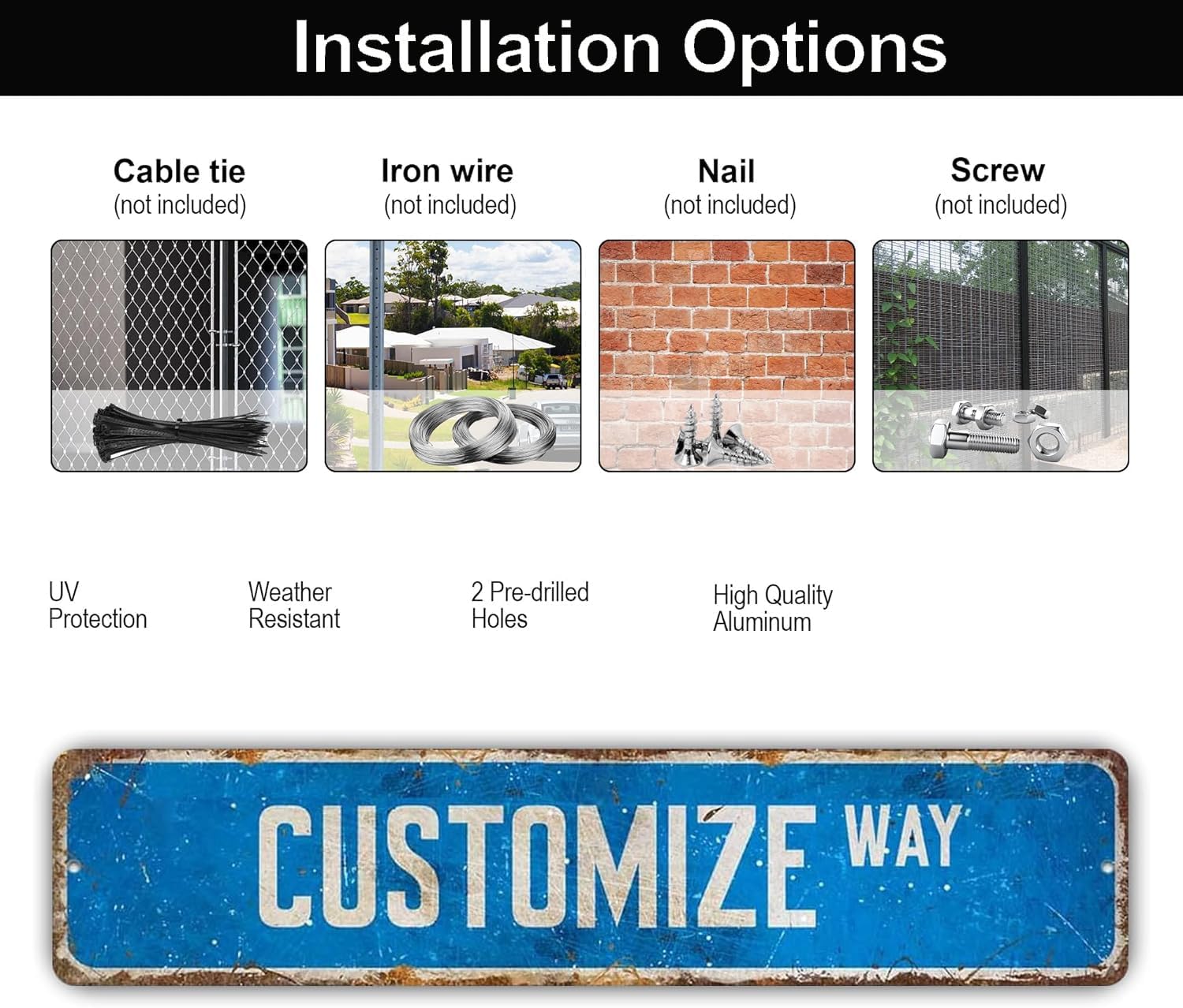 - DURABLE ALUMINUM: Custom Street Sign is made from heavy-duty, 40 mil thick aluminum. Unlike steel signs, our aluminum signs do not rust. Signs last up to several years outside.