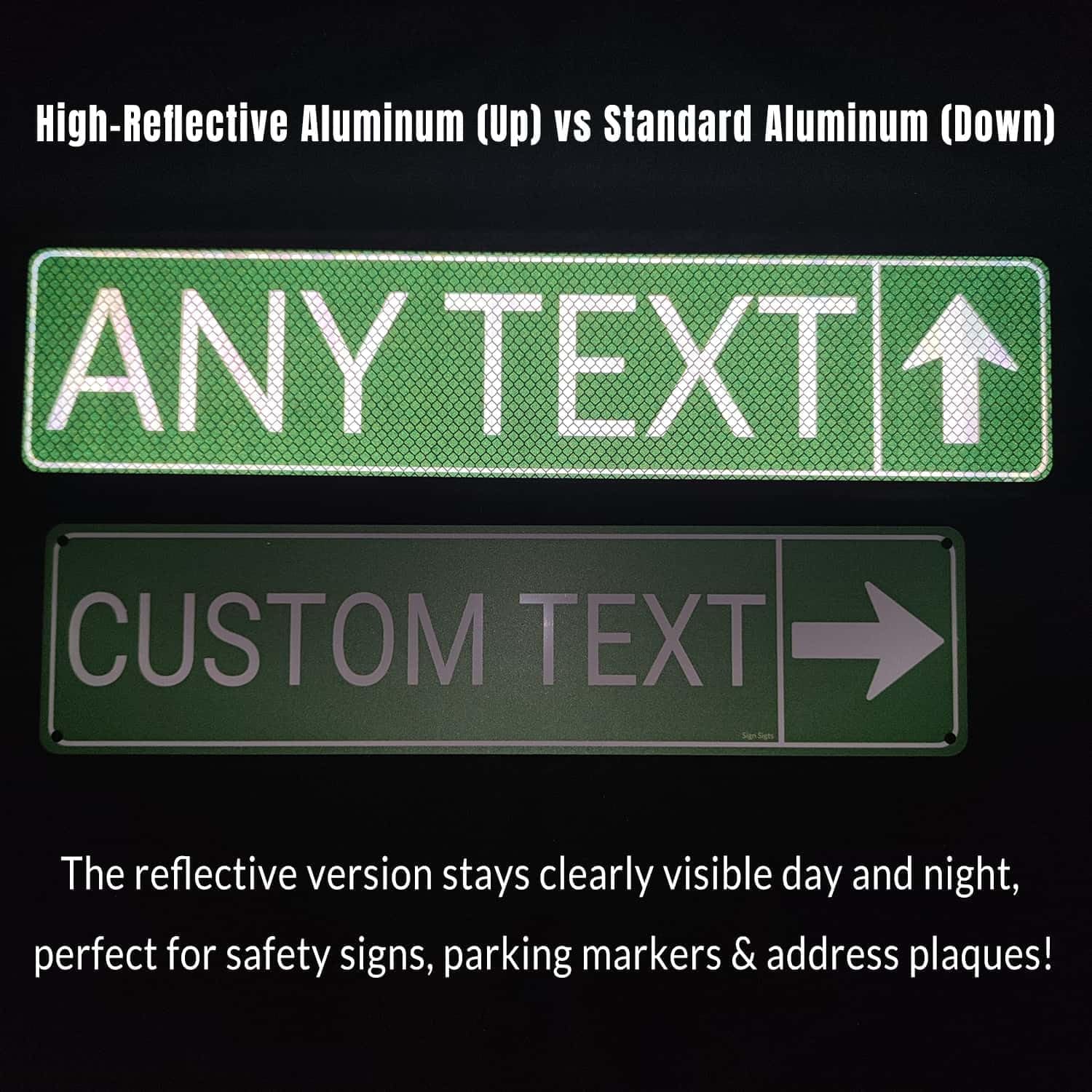 Custom Signs Metal, Personalized Reflective Street Signs for Outdoor, 4x18 Inches, Single/Double Sided, Fade Resistant .040 Aluminum, Ideal for Address, Parking