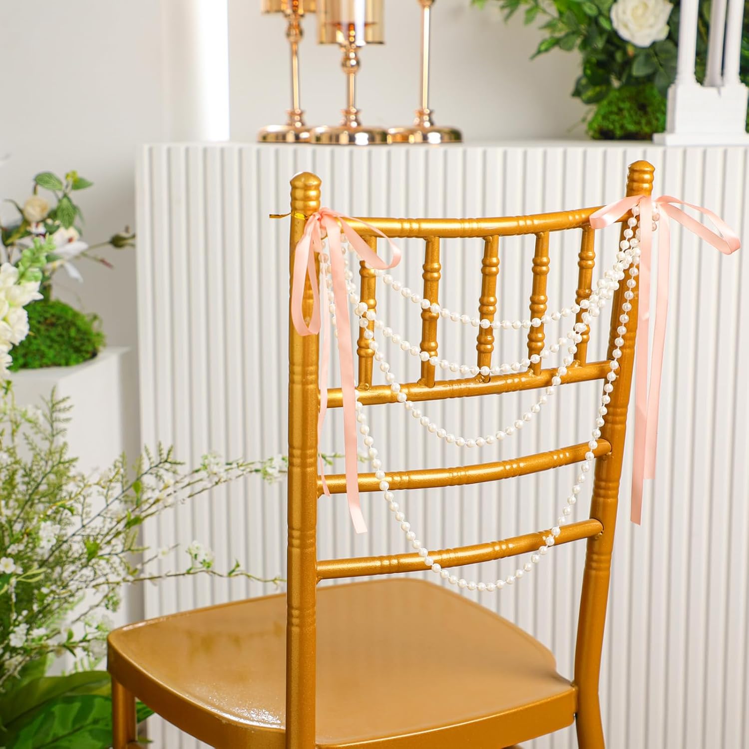 - Sufficient Quantity for Versatile Use: this package includes 16 wedding chair back garland sash with pre tied champagne pink bows, providing ample quantity for most applications; Whether you're decorating for a wedding, party, or special event, the large quantity allows for creative arrangements, such as pearl chair back garlands or beautiful centerpieces, ensuring your decor is visually appealing and eye catching