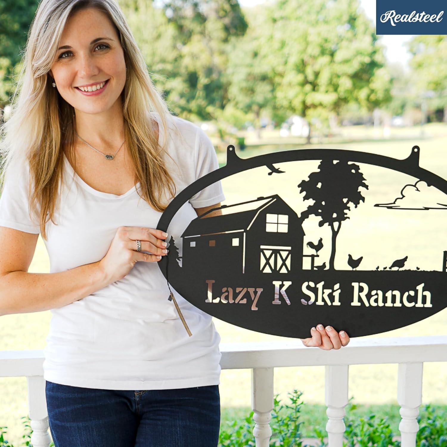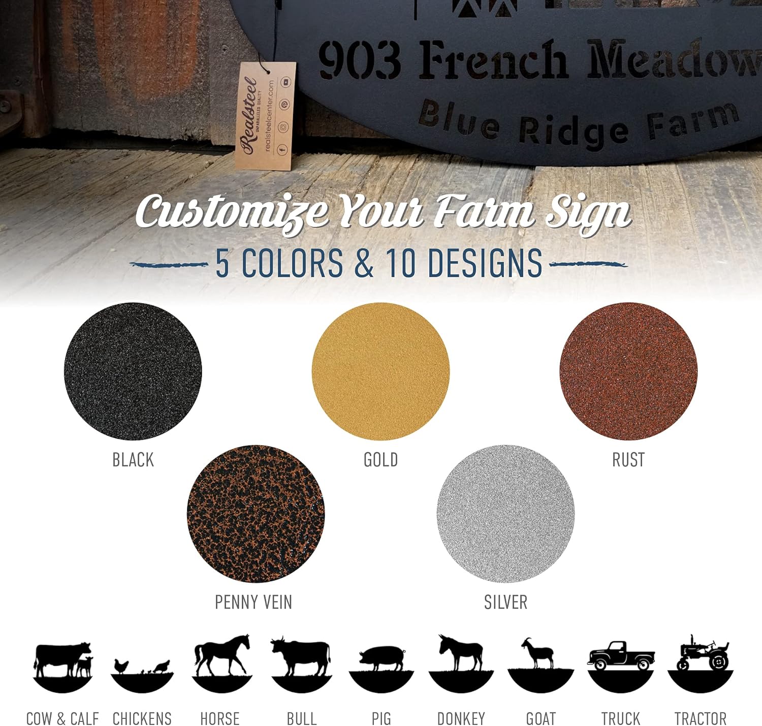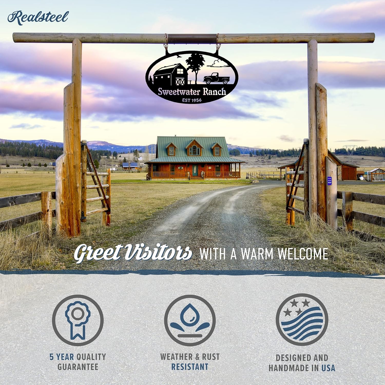 RealSteel Personalized Farm Sign - Custom Design Metal Family Name Sign - Weather & Rust Resistant - Rustic Charm - Choose Your Design - Home Decor - Outdoor Customized Sign for Ranch House