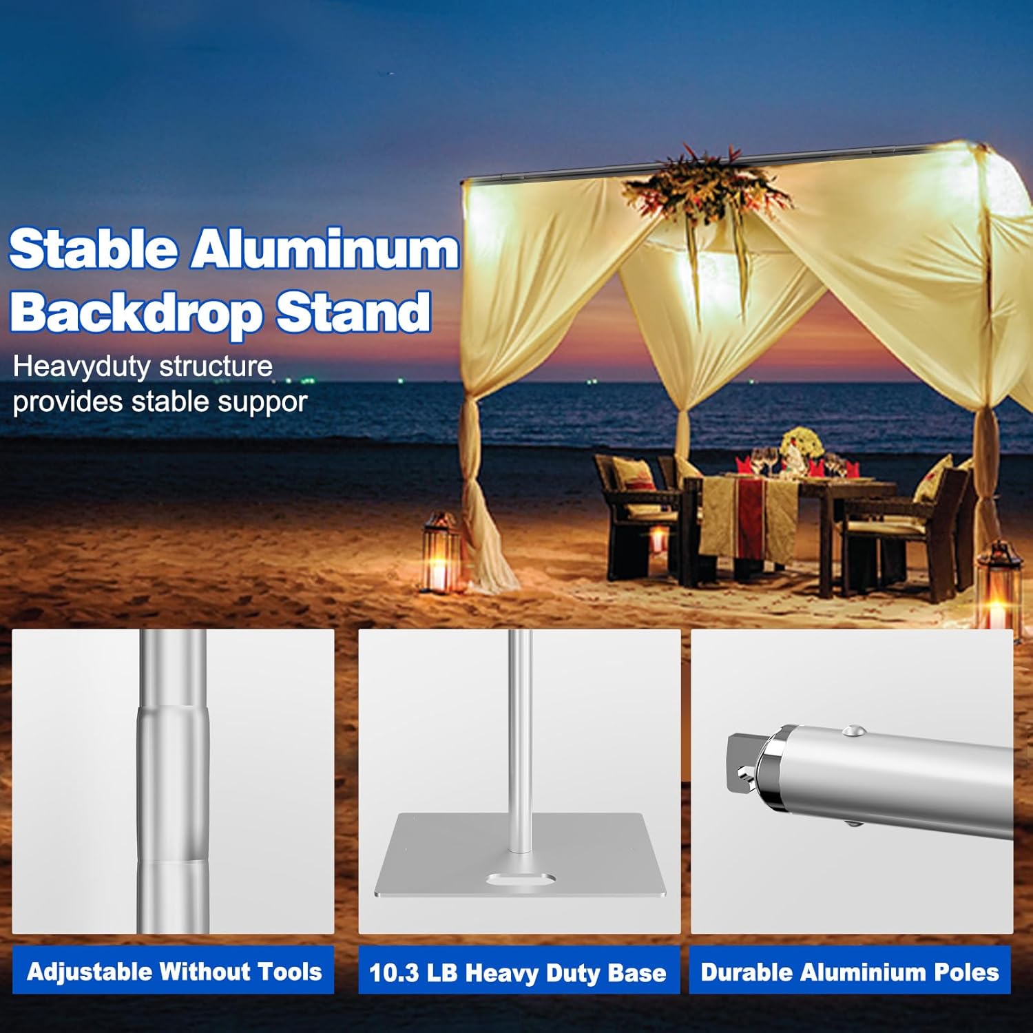 Pipe and Drape Backdrop Stand 10ftx10ft Adjustable Background Support System Heavy Duty Background Stand for Wedding Banquet Decorations Silvery