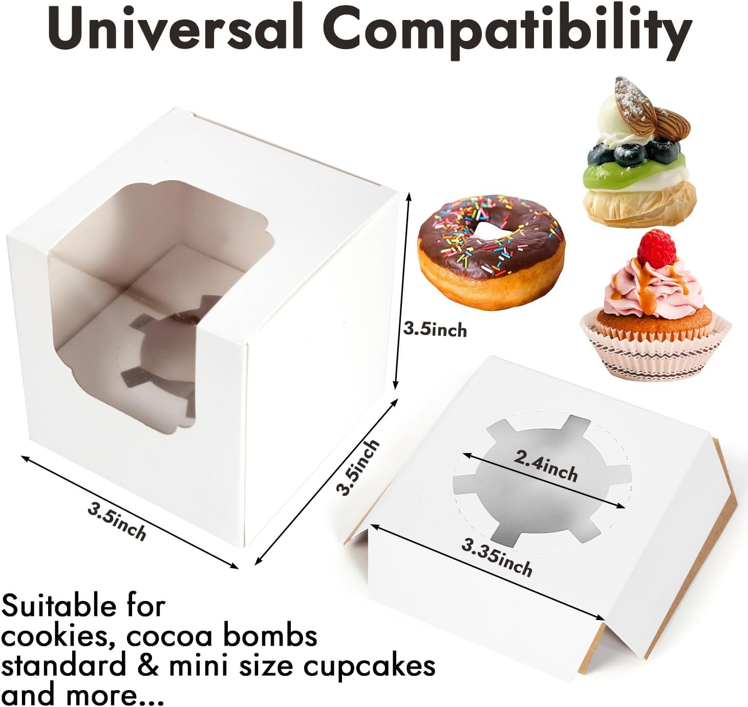- Premium Quality - Constructed from recyclable food-grade cardboard paper, these individual cupcake containers not only uphold the freshness and moisture of your freshly baked treats but also serve as an eco-friendly alternative to plastic cupcake containers. Please feel free to use it.