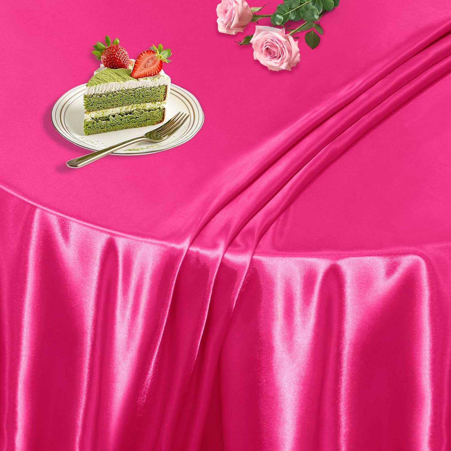 KKJIAF 1 Pack 108 Inch Round Table Cloth, Hot Pink Overlay Round Satin Table Cover, Silky Satin Dining Tablecloths for Wedding Buffet Parties Banquet Decoration