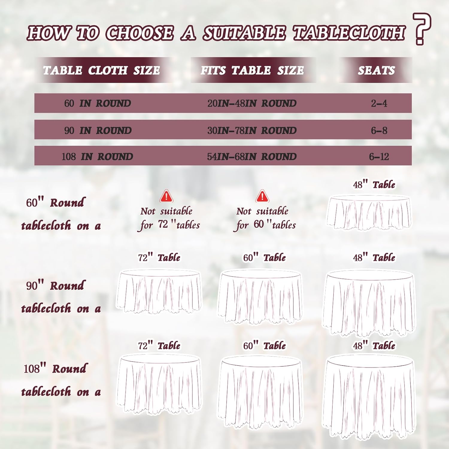 - Unique Design: The round tablecloths features a wavy edge sealing design, providing excellent brightness and a sense of sagging. It is a classic style with a touch of luxury and can be paired with table cushions and napkins to protect your precious table from scratches and stains, adding a touch of brightness to your home.