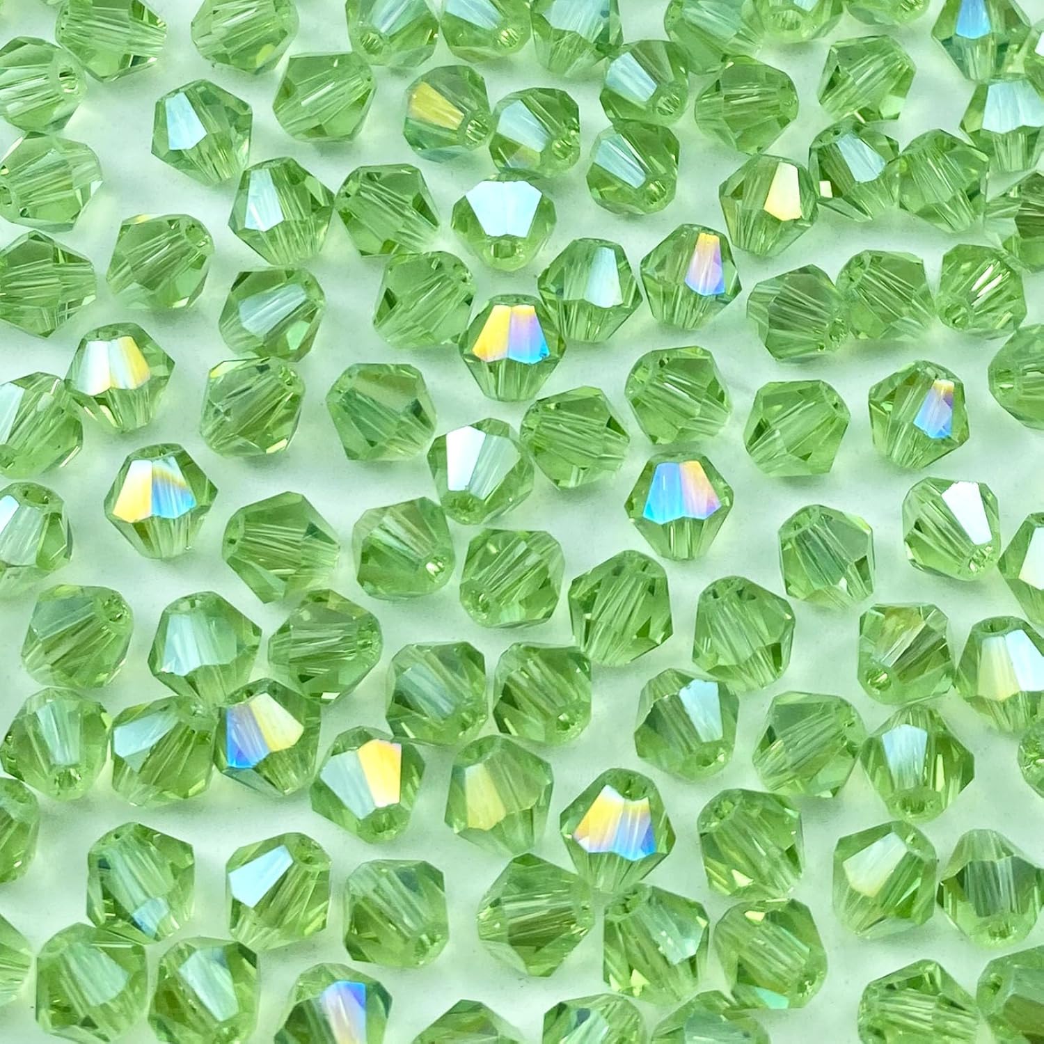 100pcs 8mm Bicone Crystal Glass Beads Loose Spacer Beads Faceted Craft Beads for Jewelry Making DIY Necklace Bracelet Earring Wind Chimes Suncatchers Ornamen(Light Green AB)